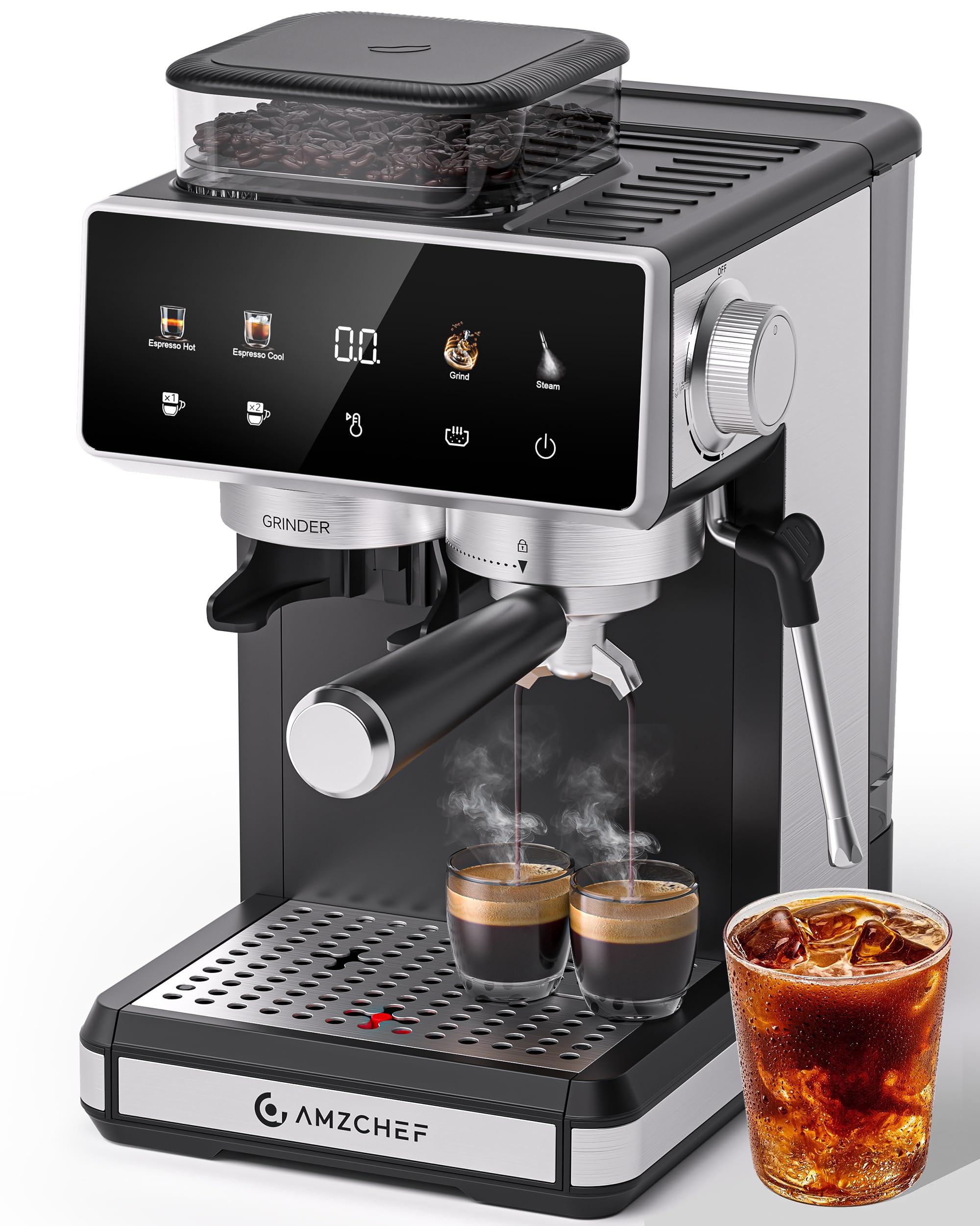 AMZCHEF Máquina de café expreso de 20 barras con molinillo – Máquina de café de 3 temperaturas con 20 ajustes de molienda, cafeter