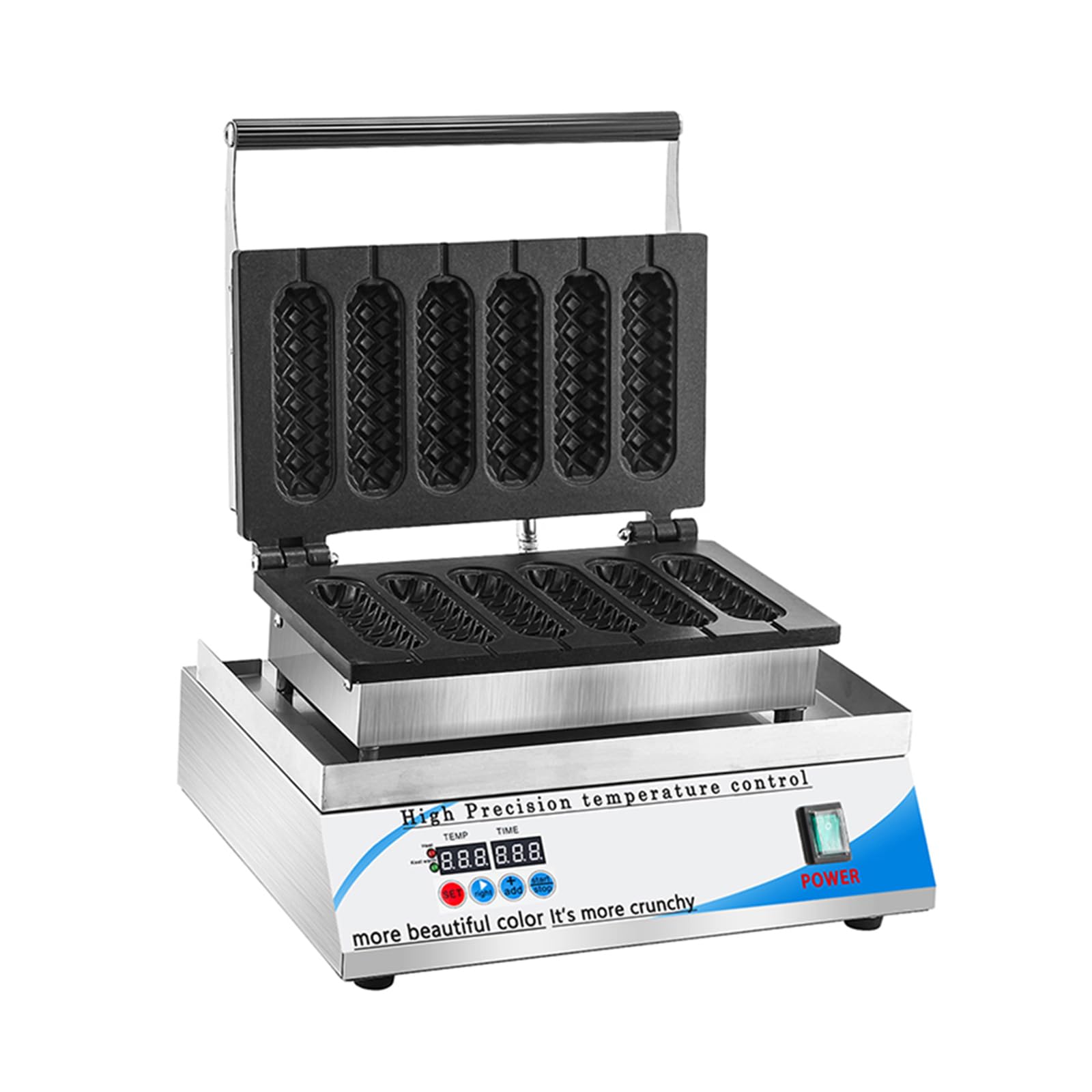 Máquina eléctrica para hacer gofres para perros calientes, máquina de panadería de gofres de acero inoxidable antiadherente de 6 r