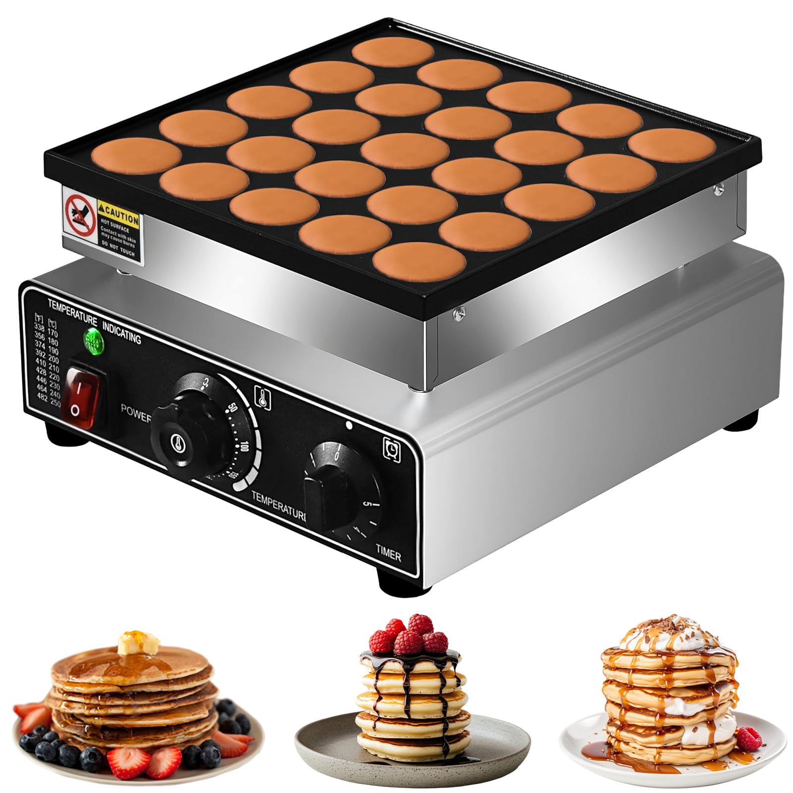 110 V comercial 25 piezas mini máquina holandesa para panqueques, 950 W, antiadherente, parrilla holandesa de Poffertjes de acero