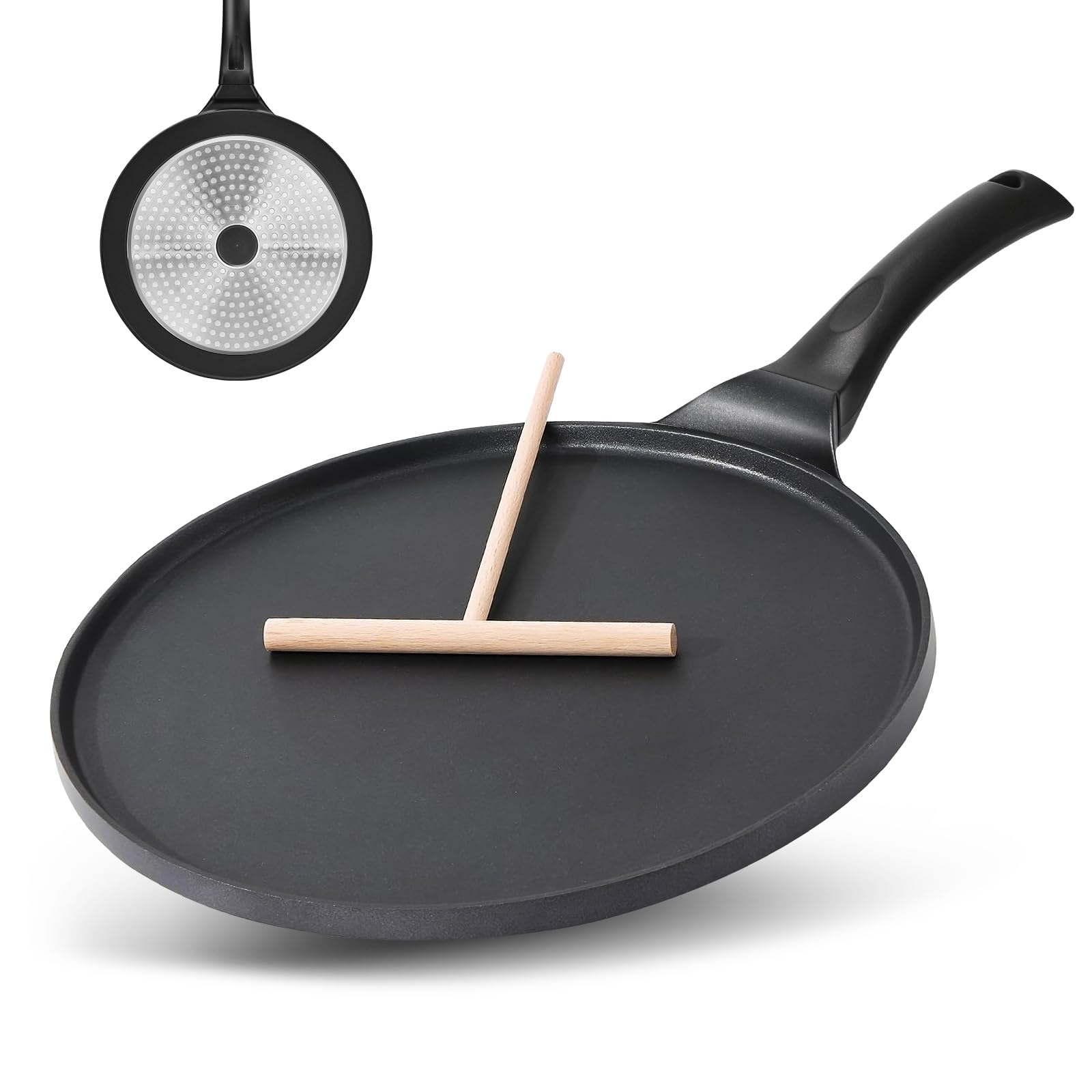 JEETEE Sartén para crepas antiadherente, sartén Comales para tortillas de 11 pulgadas para estufa, revestimiento de granito, sarté