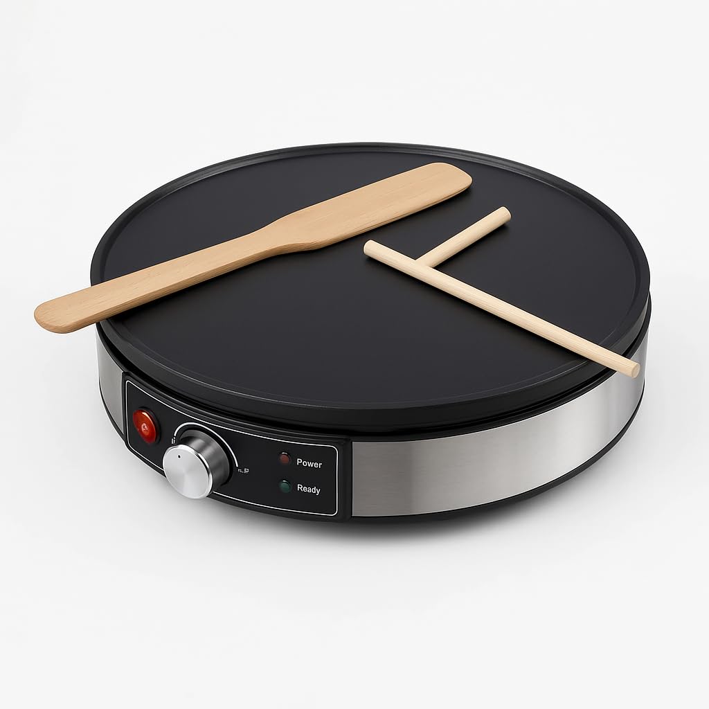 Máquina eléctrica de crepas de 13 pulgadas, máquina redonda de 1000 W, máquina para hacer crepas de acero inoxidable con 3 perilla