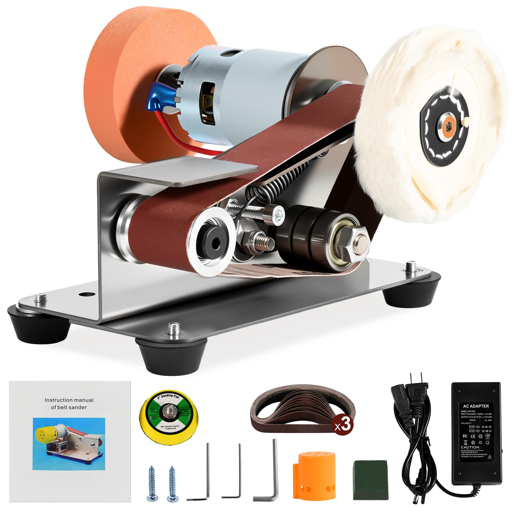Mornajina Mini lijadora de banda para fabricación de cuchillos, lijadora de banda de banco de energía eléctrica 3 en 1, afilador d