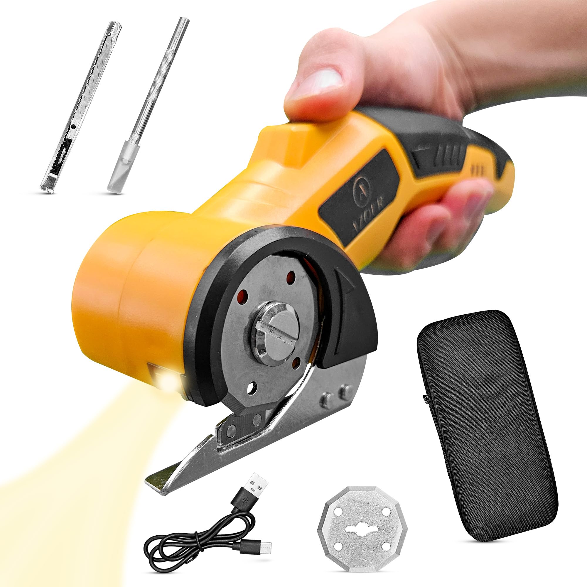 Cortador eléctrico de tela giratorio, cortador giratorio eléctrico para tela de tela, viene con cuchillas de repuesto y piedras de