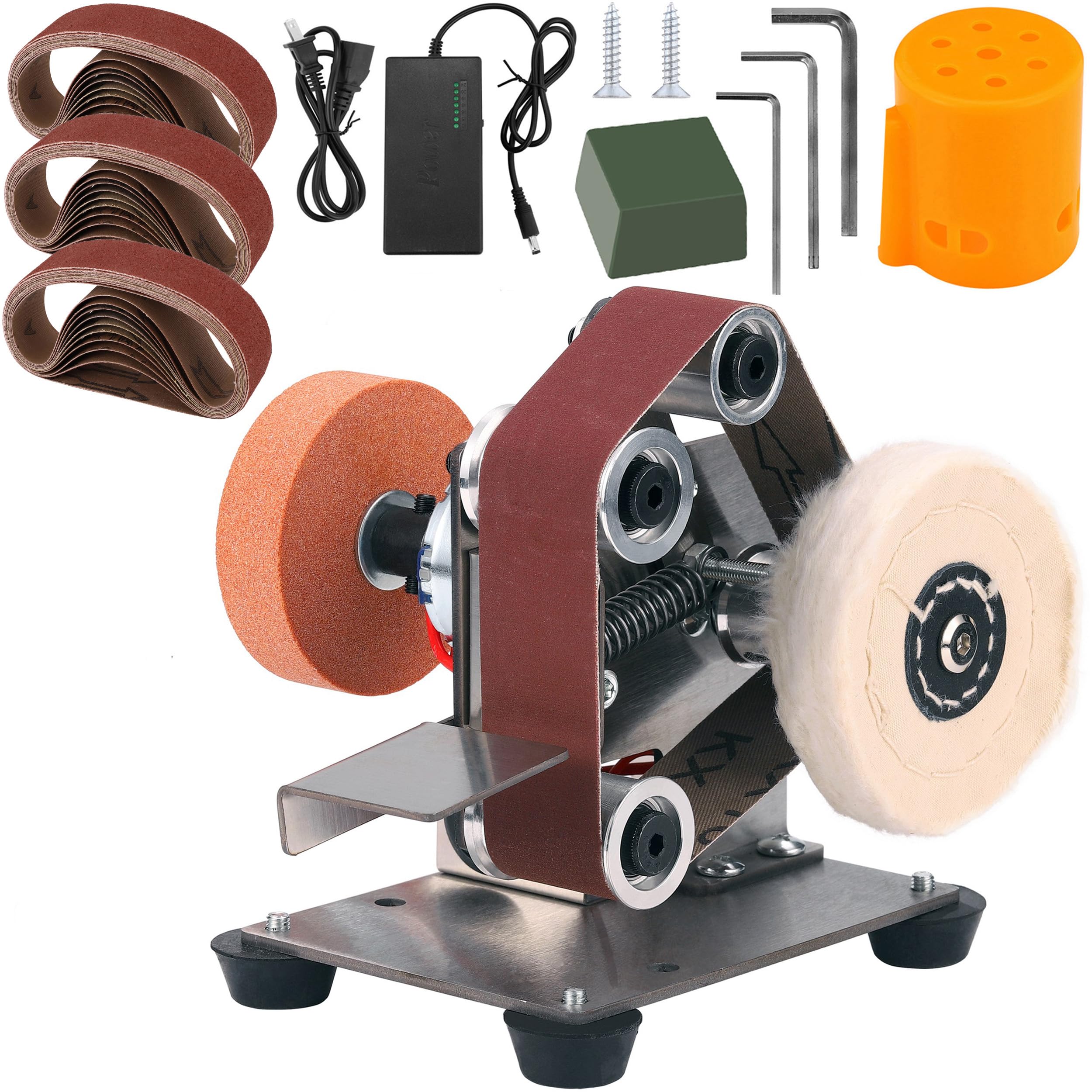 TOOVEM – Mini lijadora de banda, amoladora de banda de 15 grados, lijadora de banda eléctrica, cuchillo eléctrico multifuncional y