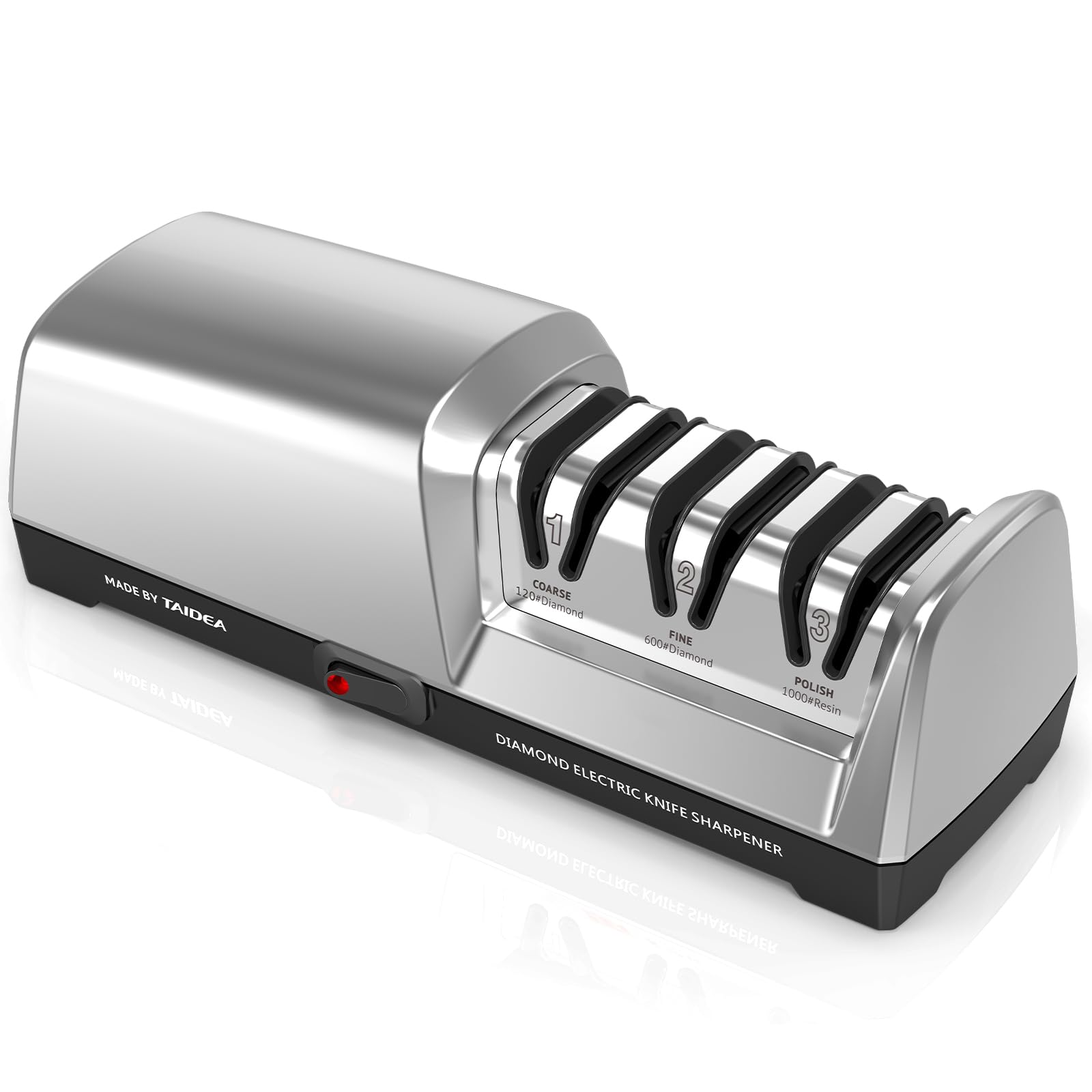 Afilador de cuchillos eléctrico, 3 etapas con abrasivos 100% de diamante y guías de ángulo de precisión, afilador de cuchillos de