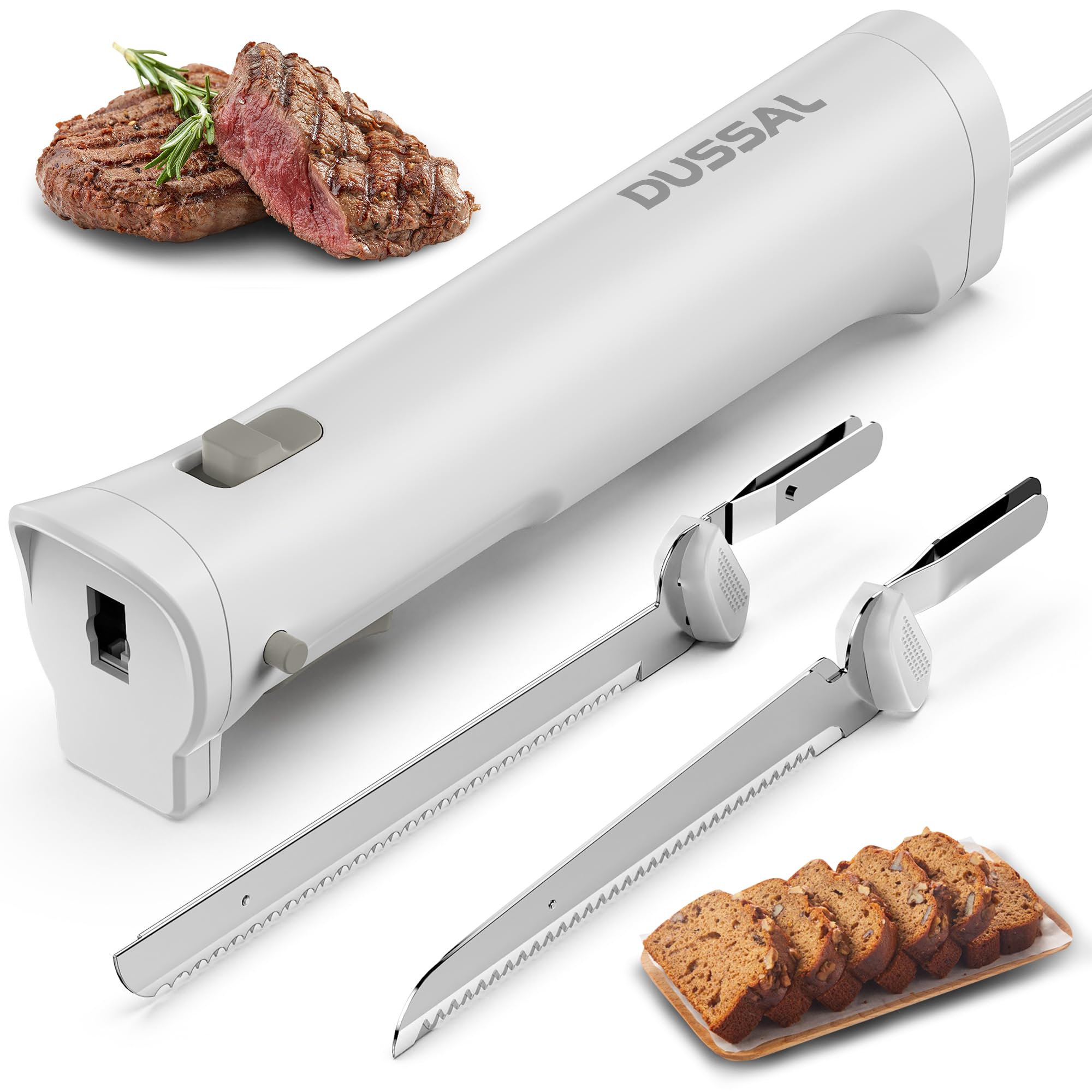DUSSAL – Cuchillo eléctrico, cuchillo de corte eléctrico, 4 cuchillas de acero inoxidable, interruptor de bloqueo de seguridad, bo