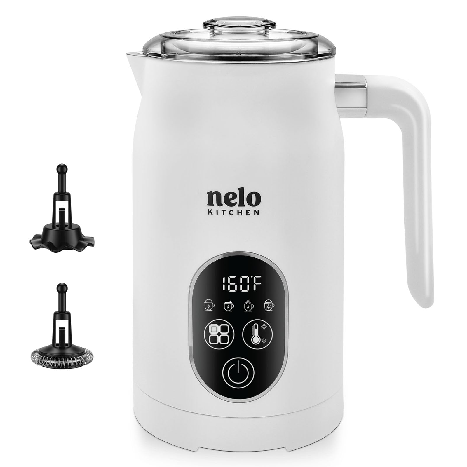 NELO Espumador de leche eléctrico, espumador de leche digital 4 en 1 y vaporizador con control de temperatura en tiempo real, espu