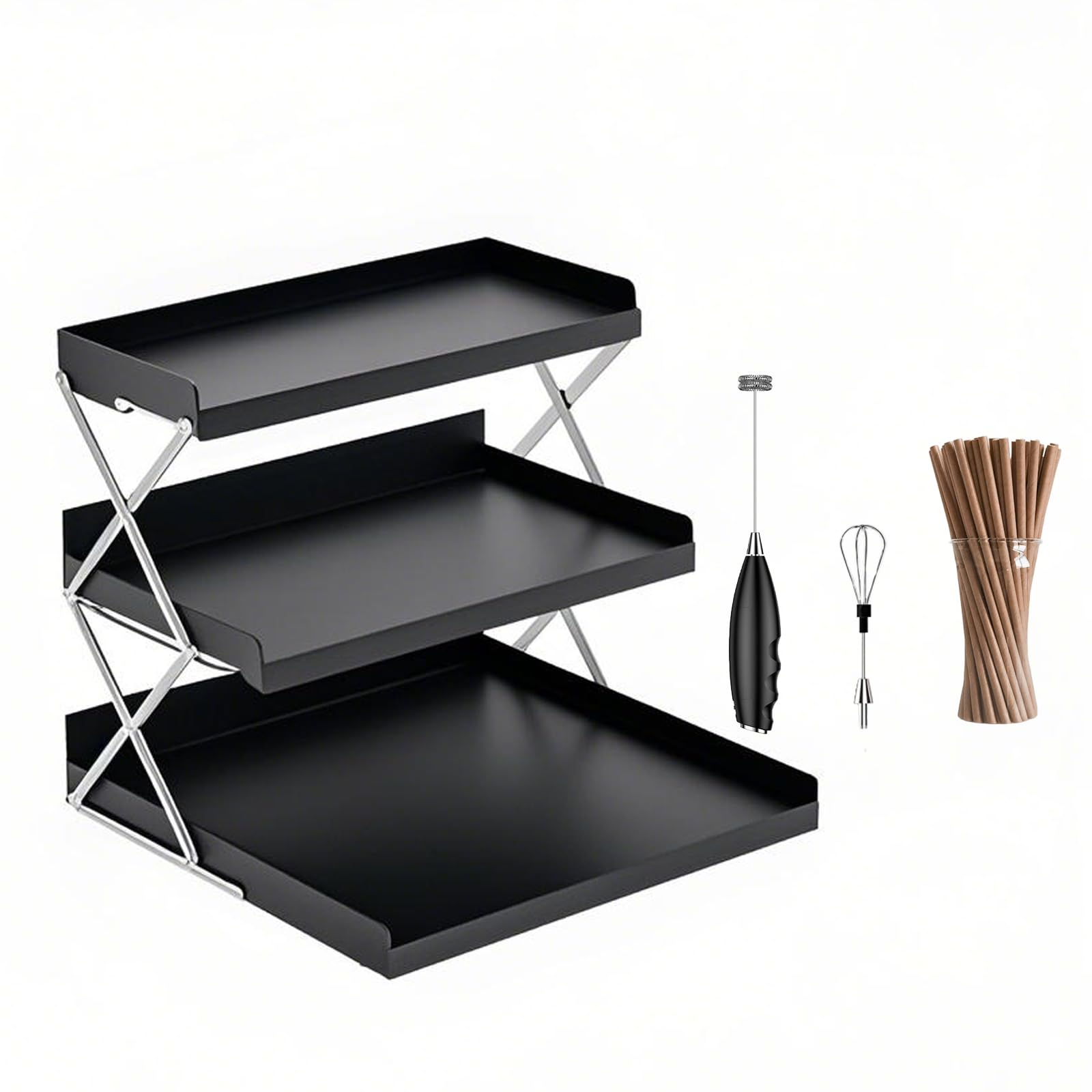 Organizador plegable de acero al carbono ajustable de 3 niveles, soporte para estación de café para cocina u oficina, 2 ajustes de