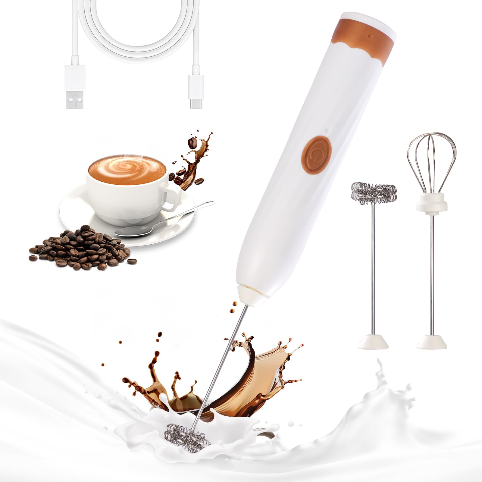 Varita espumadora de leche para café, espumador de café silencioso, batidor eléctrico recargable de mano con 2 cabezales, 3 veloci