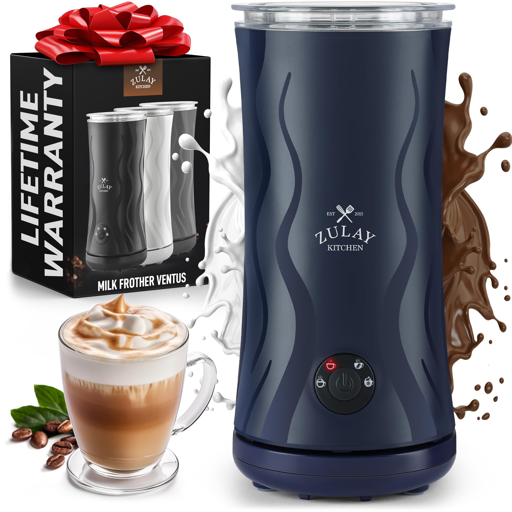 Zulay – Espumador de leche y vaporizador 4 en 1, máquina automática de espuma fría y caliente con apagado automático y control de