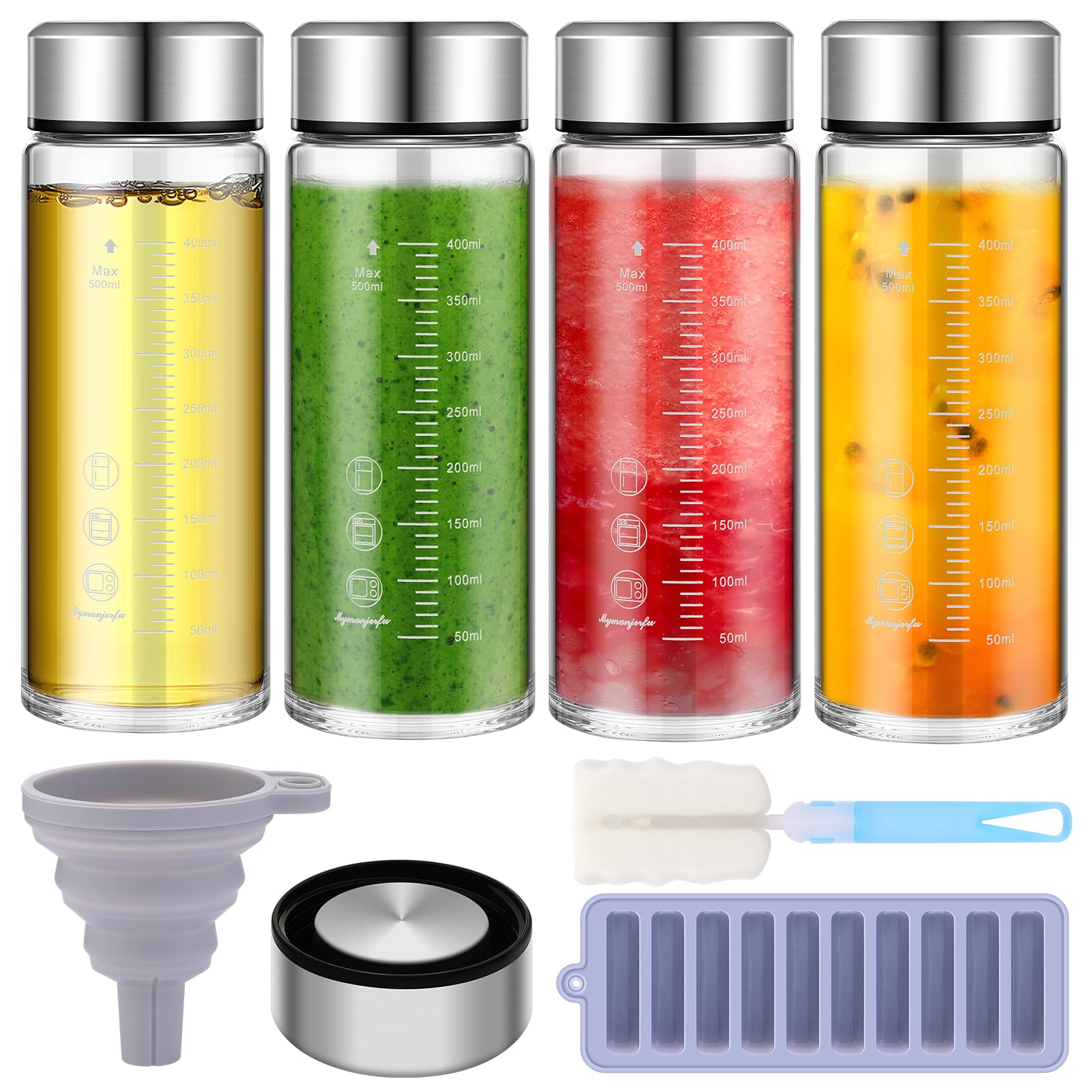 Botellas de jugo de vidrio con tapas, 4 unidades, 16 onzas, contenedor reutilizable de boca ancha con anillo de silicona 100% a pr