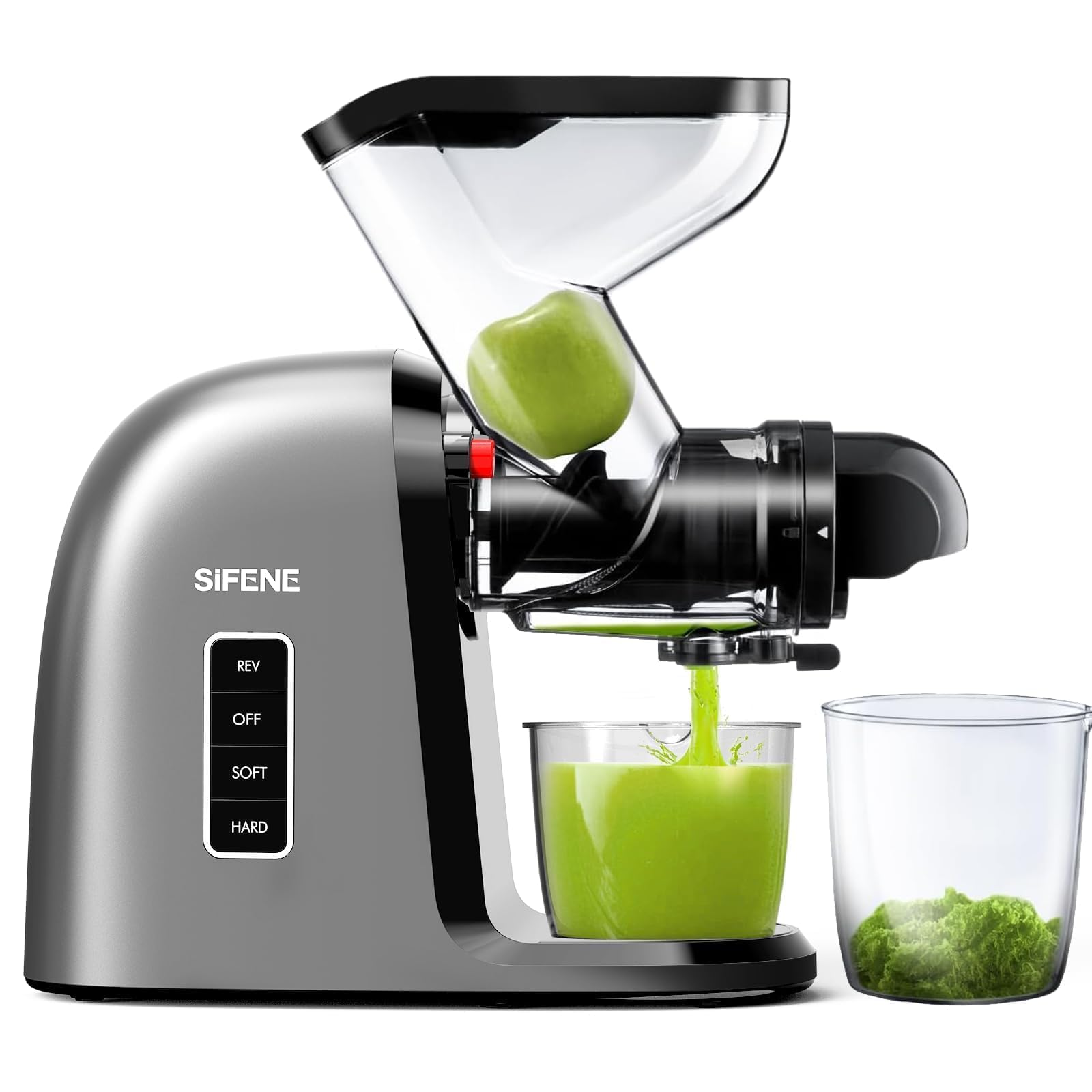 SiFENE Máquina exprimidora de prensa en frío, canal de alimentación doble ancho de 3.2 pulgadas, exprimidor de masticación lenta p