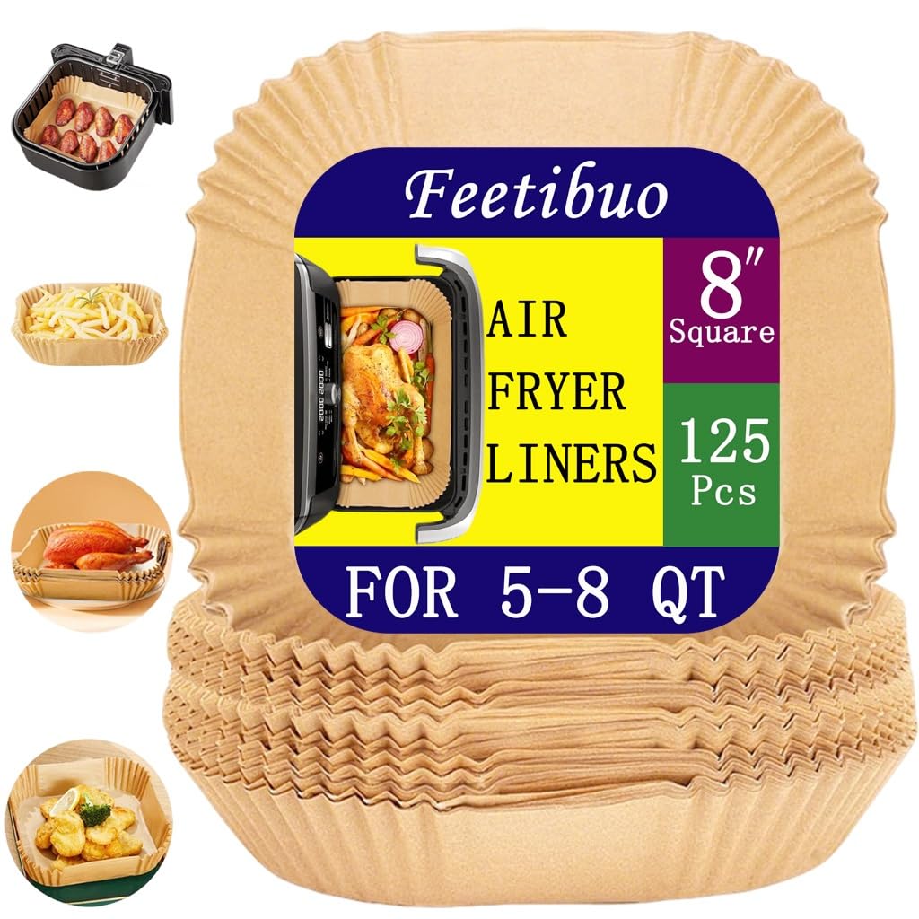 Papel pergamino para freidora de aire, forros cuadrados de freidora de aire de 7.9 pulgadas desechables, 125 hojas de papel pergam