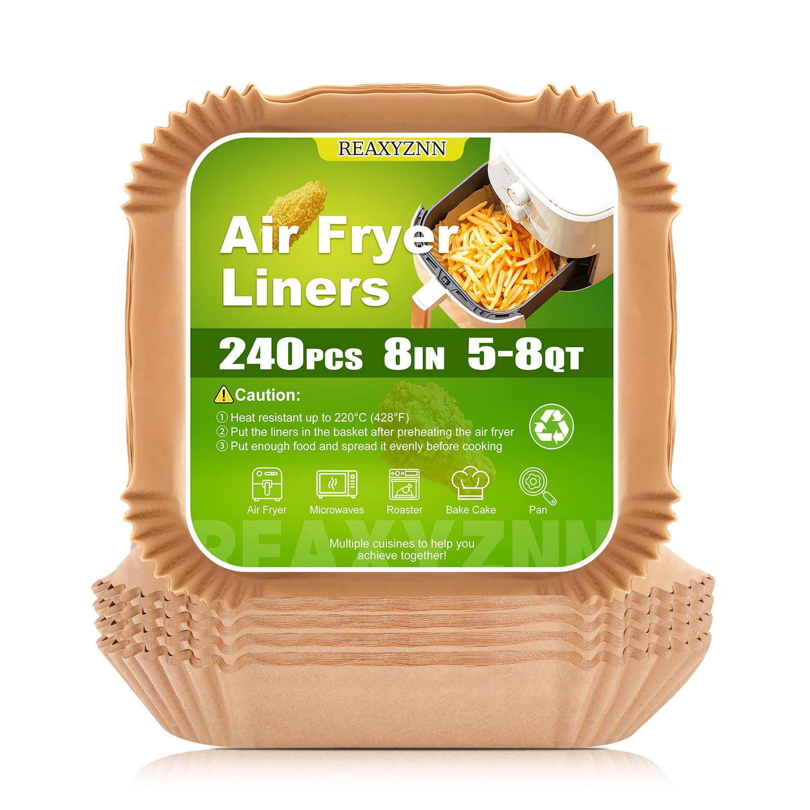 240 forros de papel desechables para freidora de aire cuadrados de 8 pulgadas, 5-8 cuartos de galón, papel pergamino antiadherente