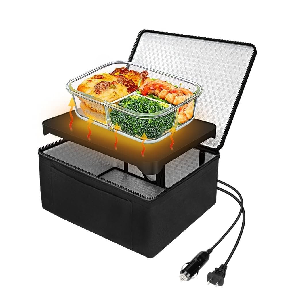 Horno portátil 3 en 1 Fiambrera eléctrica calentador de comida rápida, calentador de alimentos portátil a prueba de fugas, 12V/24V