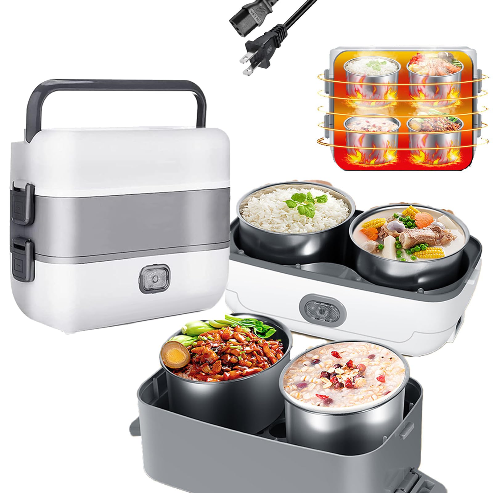 Lonchera eléctrica portátil autococinada, mini olla arrocera de 2 litros, 2 capas y 4 vaporizadores de acero inoxidable con aislam