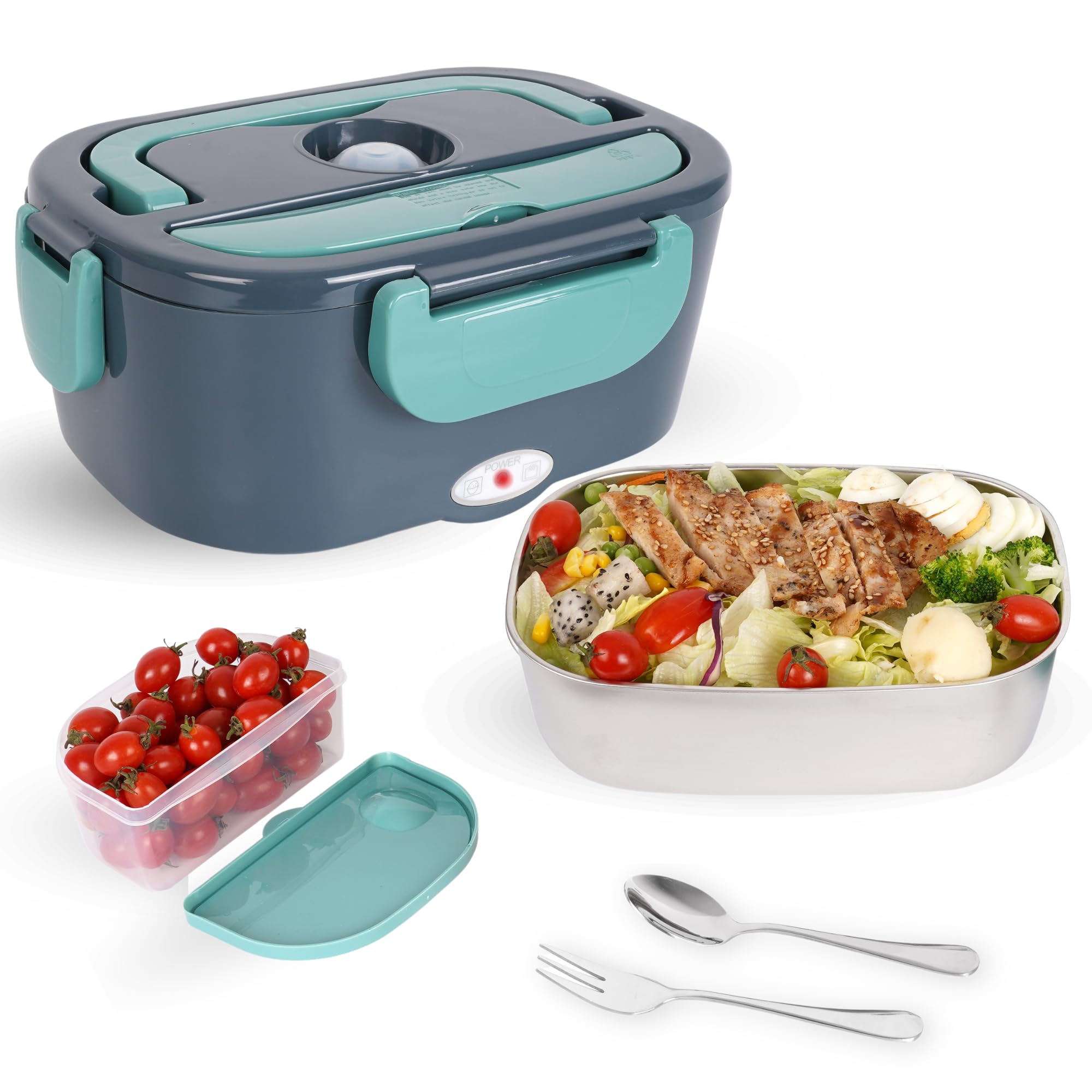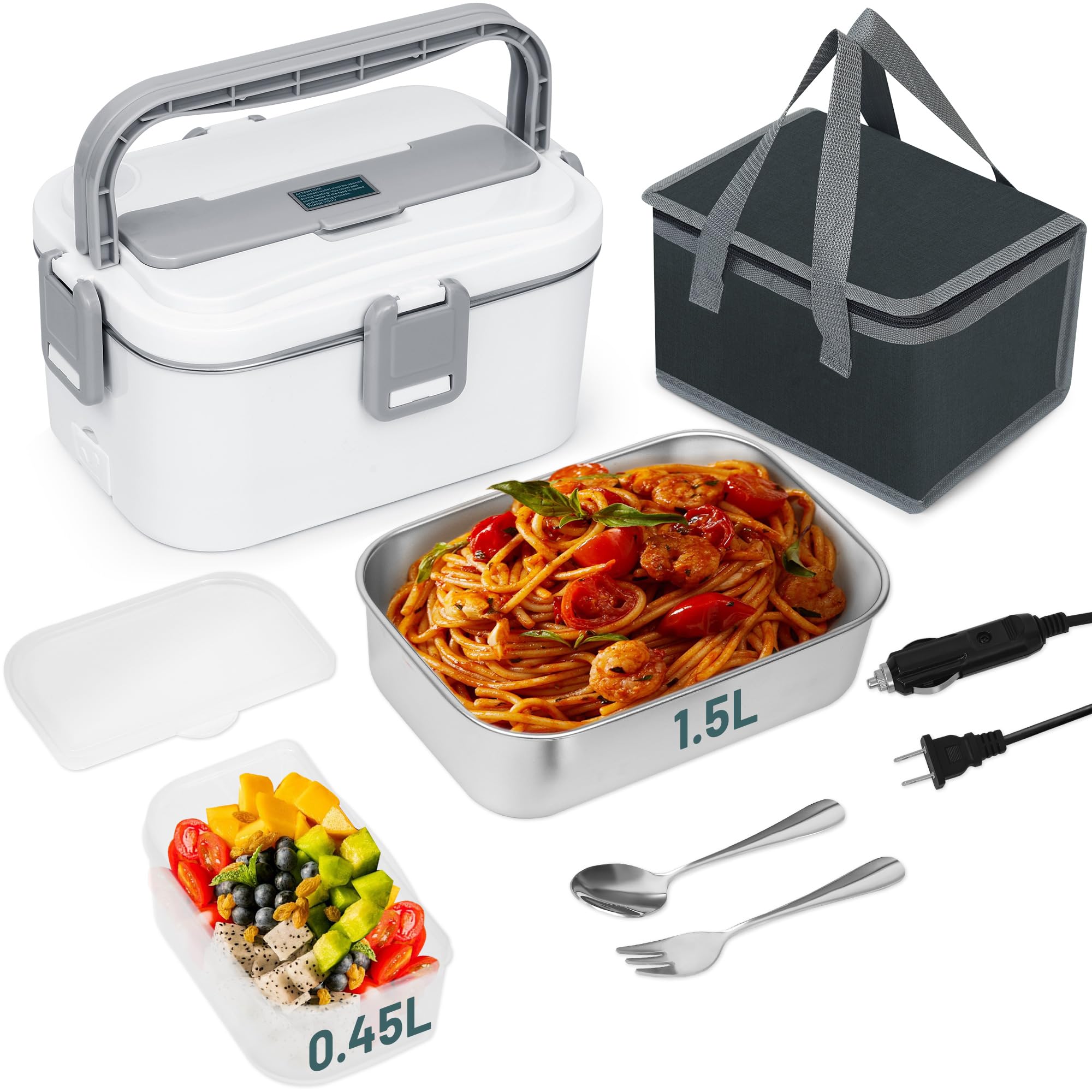 Fiambrera eléctrica para adultos, 12/24/110 V, portátil, calentada, para automóvil, camión, trabajo, oficina con tenedor y cuchara