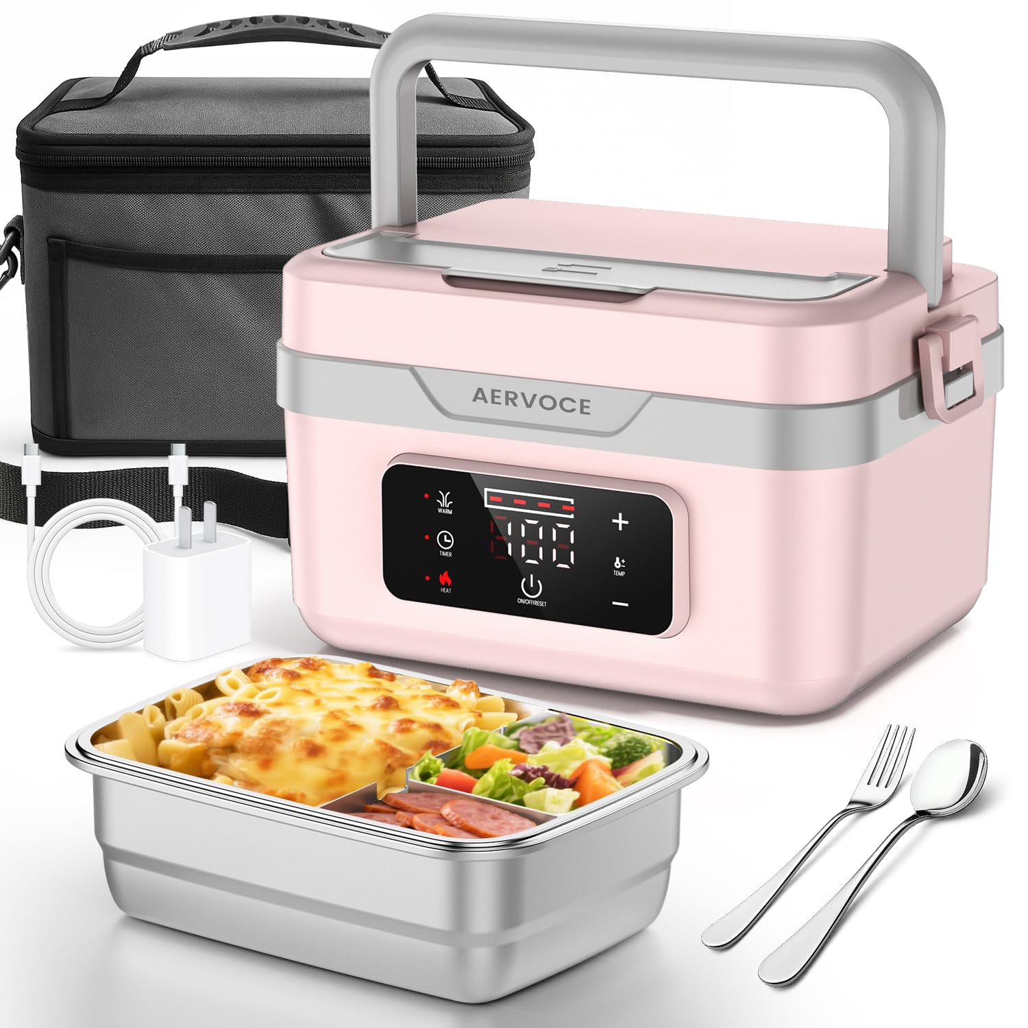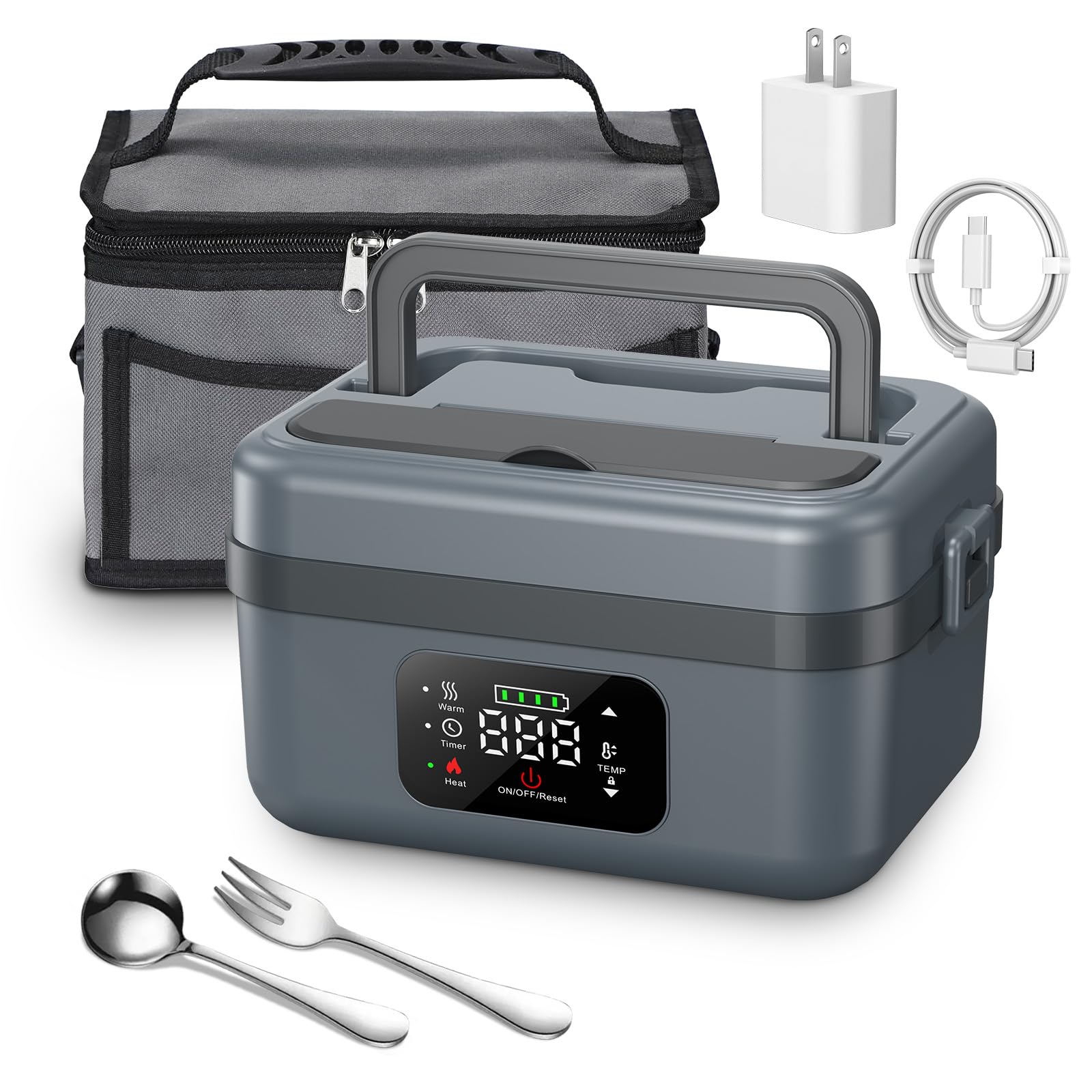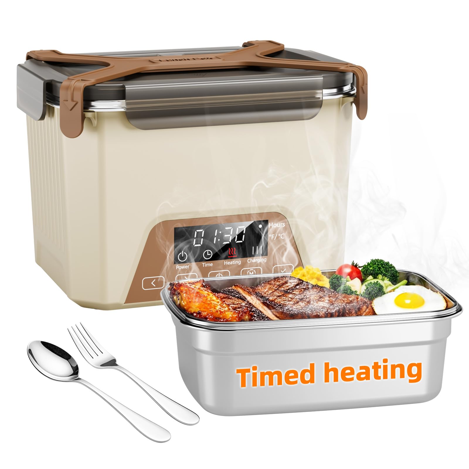 Fiambrera eléctrica para adultos con pantalla de temperatura, fiambreras calentadas de 80 W para hombres con contenedor de acero i