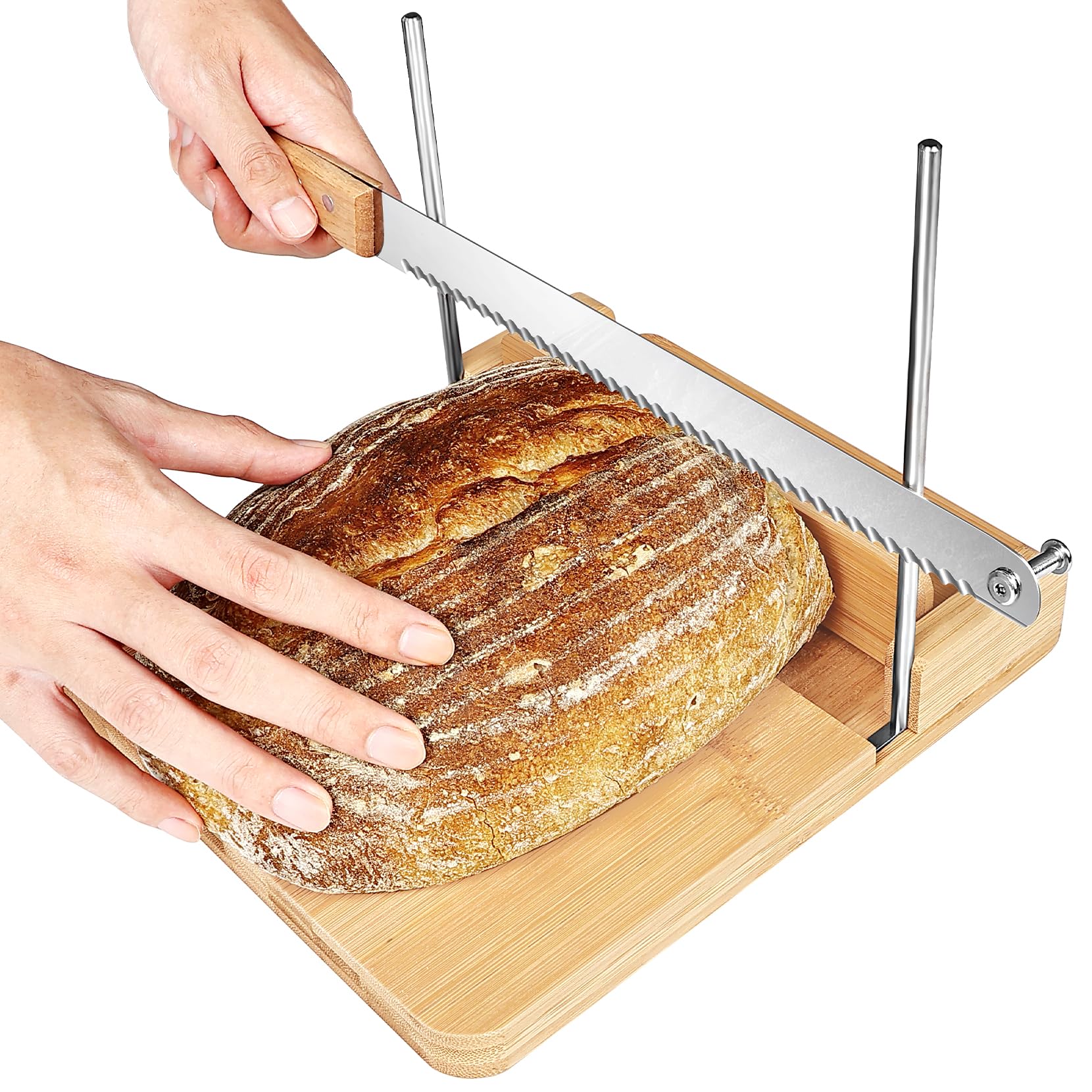 MinBoo Rebanadora de pan de bambú para pan casero, guía de rebanado de pan ajustable, tabla de cortar de pan plegable y compacta c