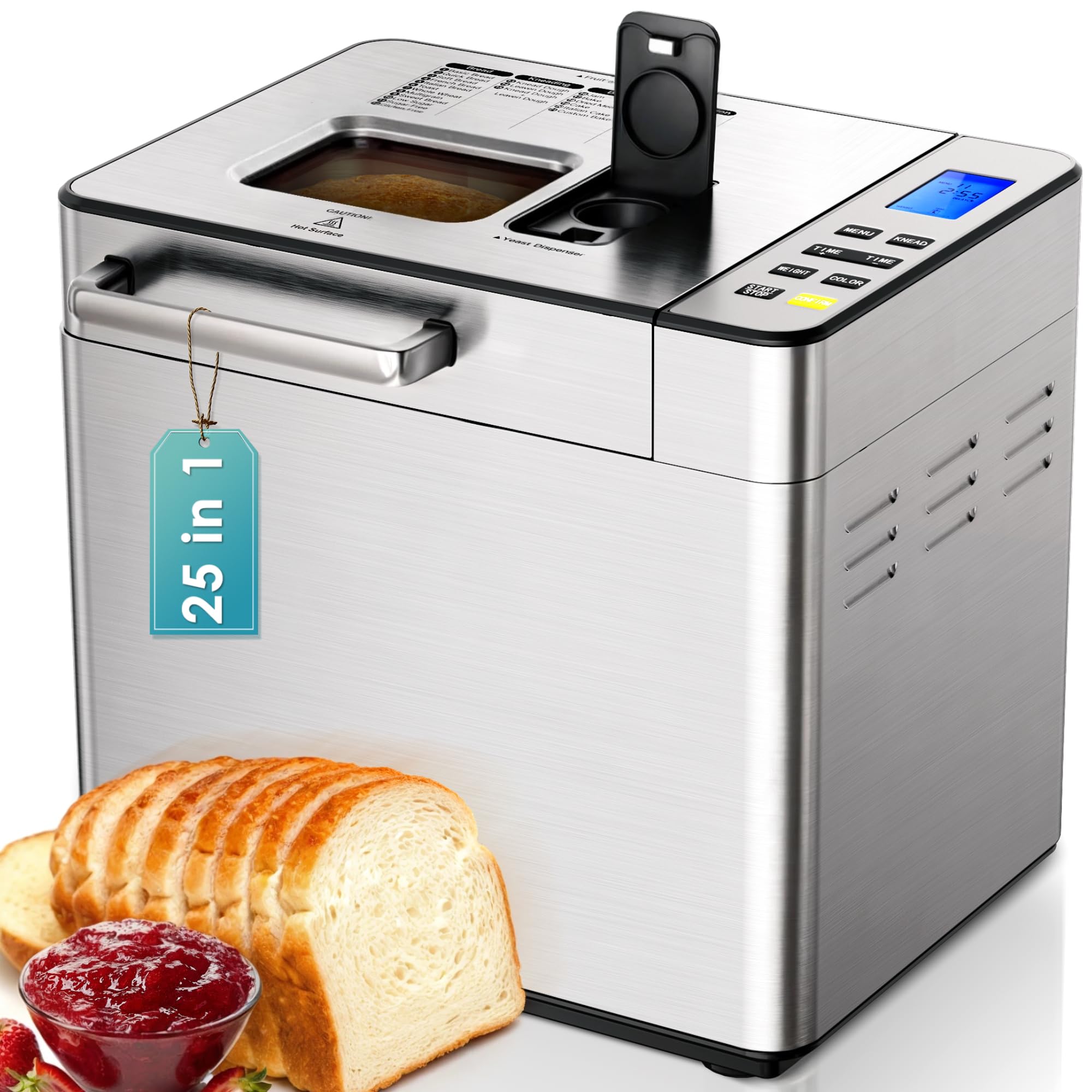 Máquina para hacer pan de 2 libras, máquina automática de pan de acero inoxidable 17 en 1, antiadherente, controles para principia