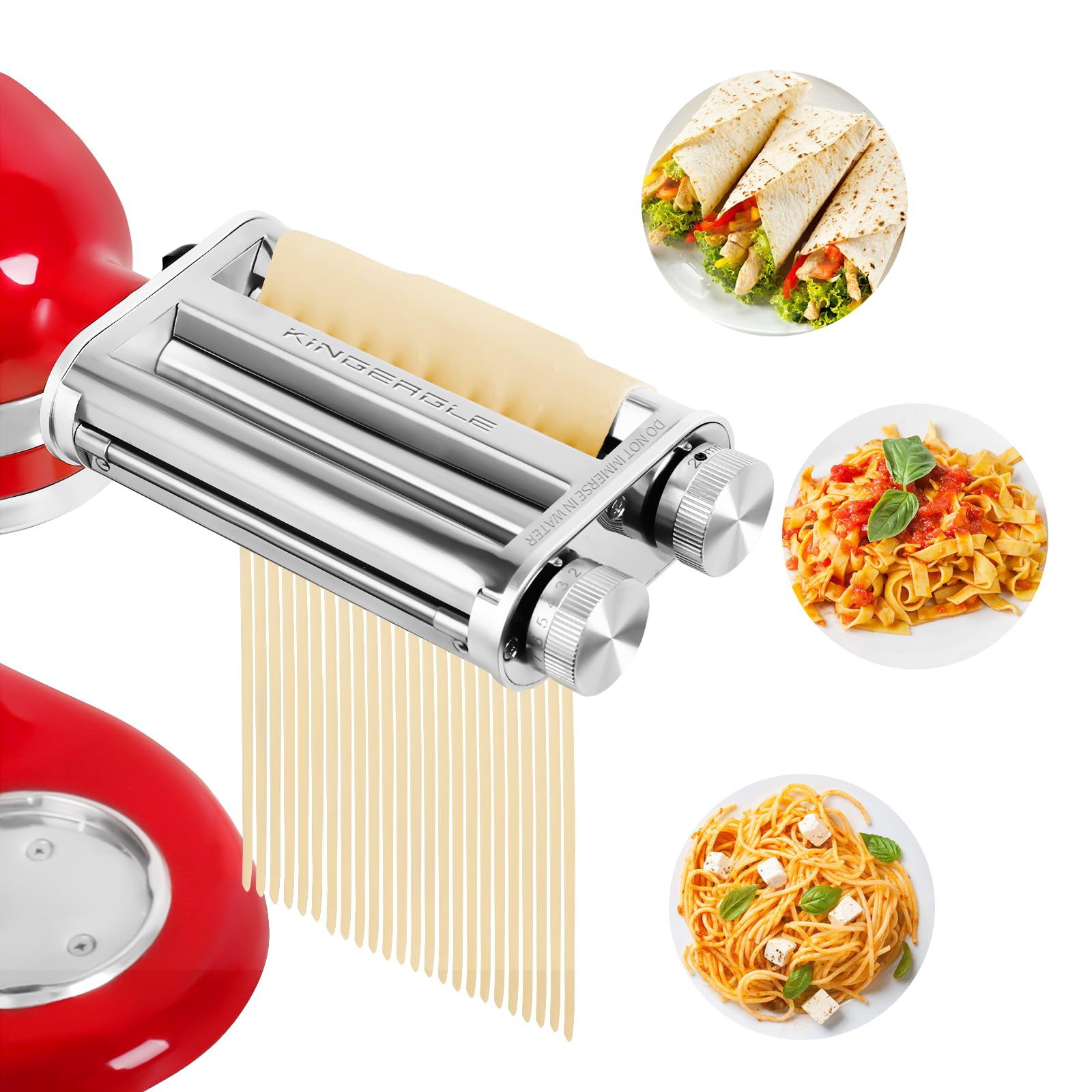 Accesorio de pasta 3 en 1 para batidora de pie KitchenAid, máquina de pasta de acero inoxidable incluye rodillo, cortadores de esp