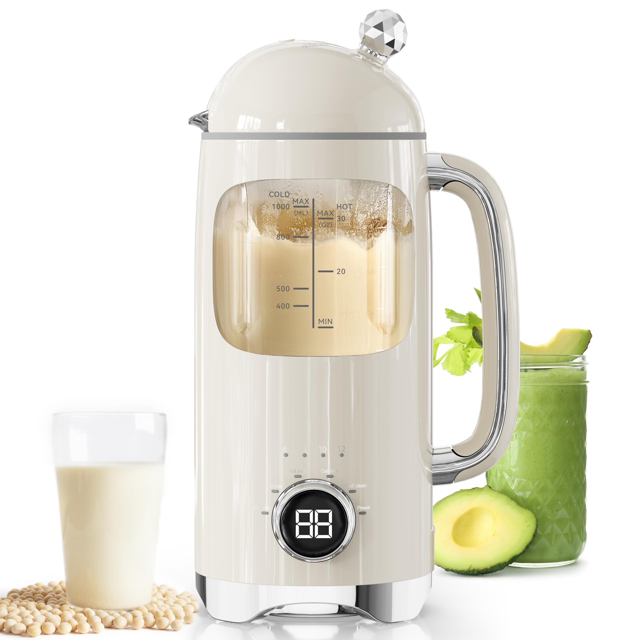 Máquina para fabricar leche de nuez 6 en 1, máquina de leche de soja y almendras de 34 onzas con 8 cuchillas, licuadora automática