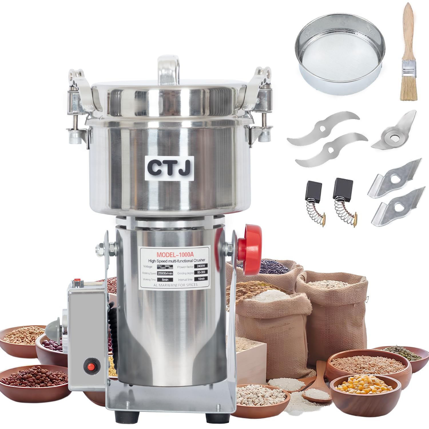 CTJ Molino de grano Molino 1000G Acero inoxidable Molienda eléctrica 25000r/min 2400W Pulverizador de harina de alta velocidad Máq