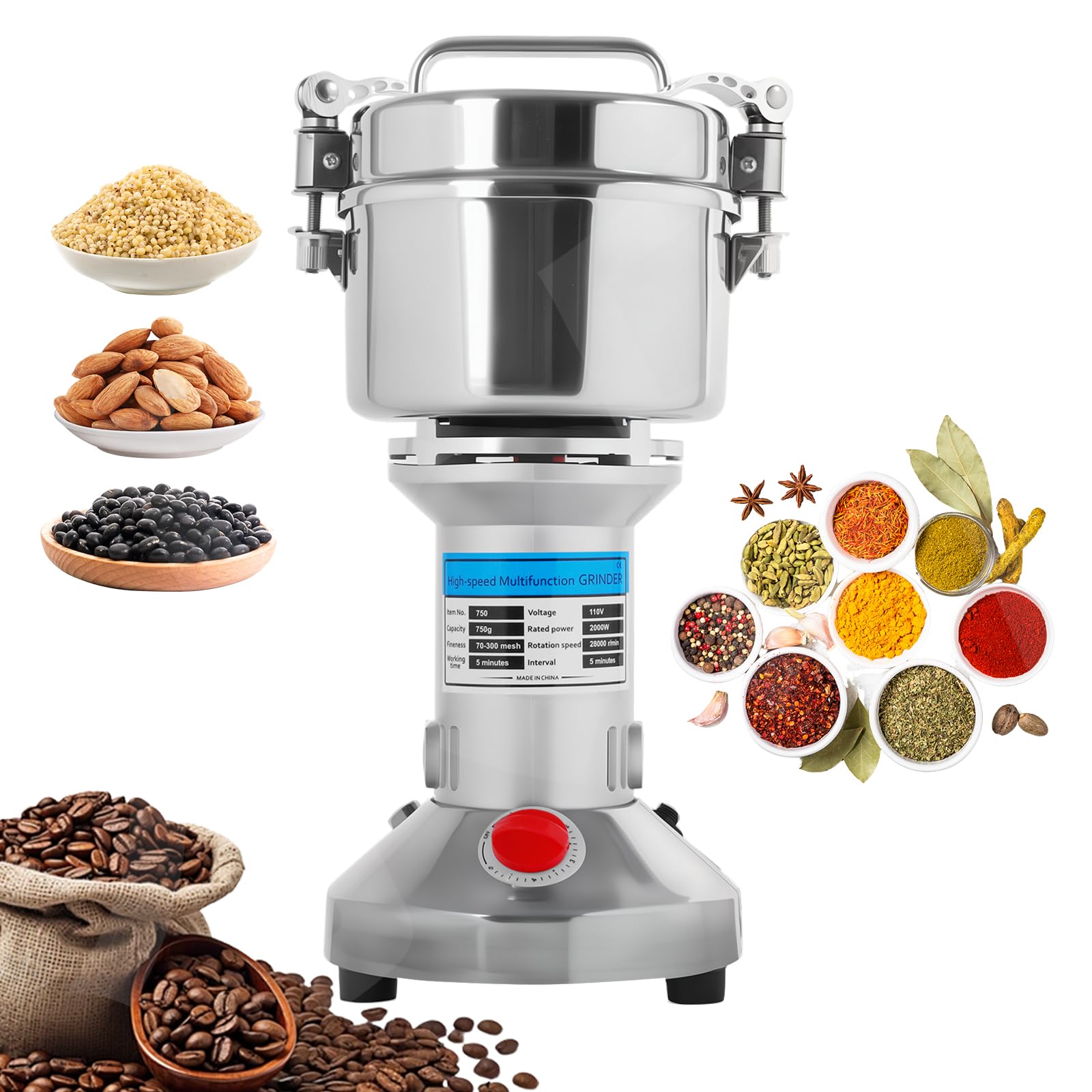 Molino eléctrico de grano de alta velocidad de 5.29 oz, molinillo de especias de acero inoxidable fino eléctrico de 750 W para mol