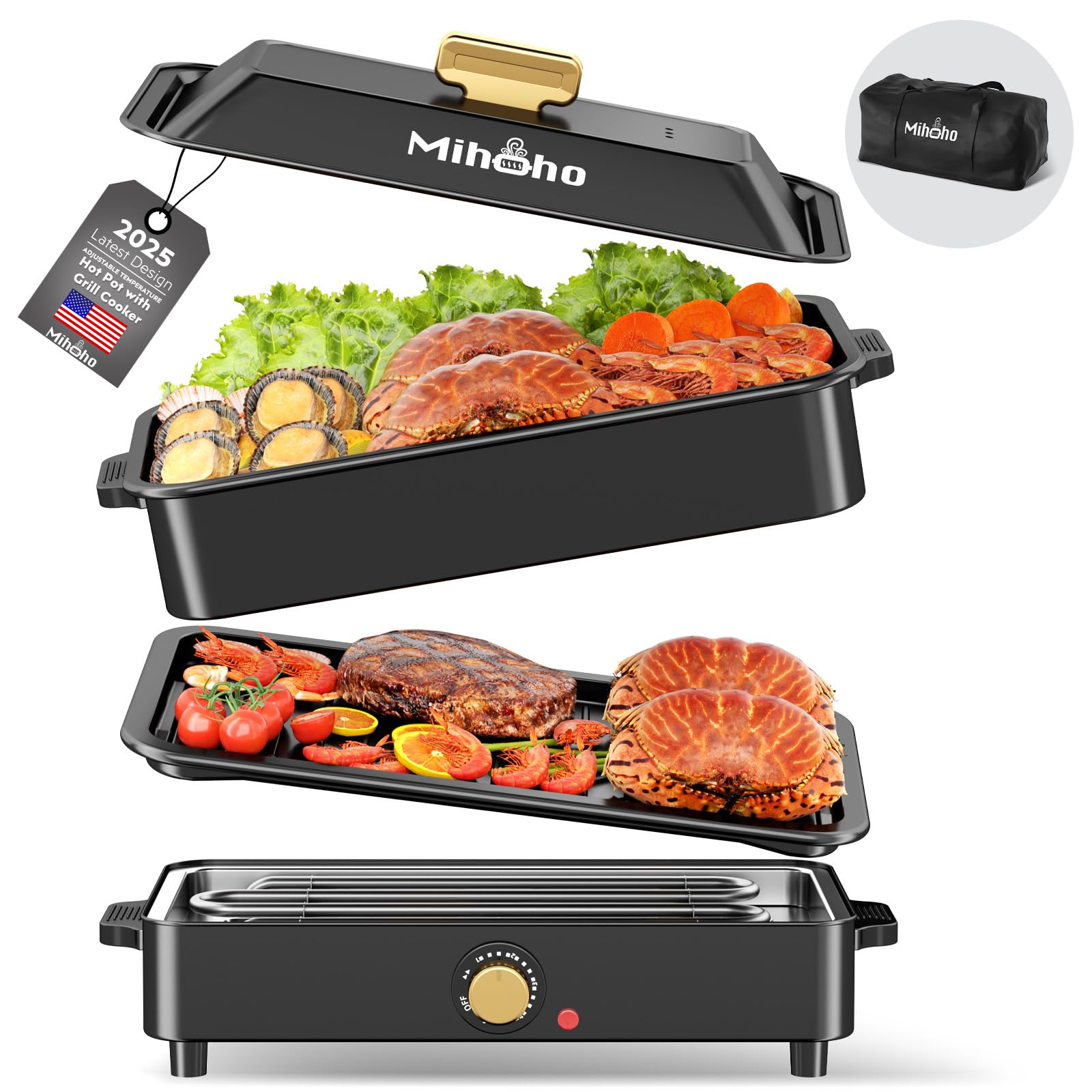 Olla caliente eléctrica 2 en 1 sin humo con parrilla, olla extraíble de 2200 W, barbacoa coreana y combo interior Shabu, sartén an