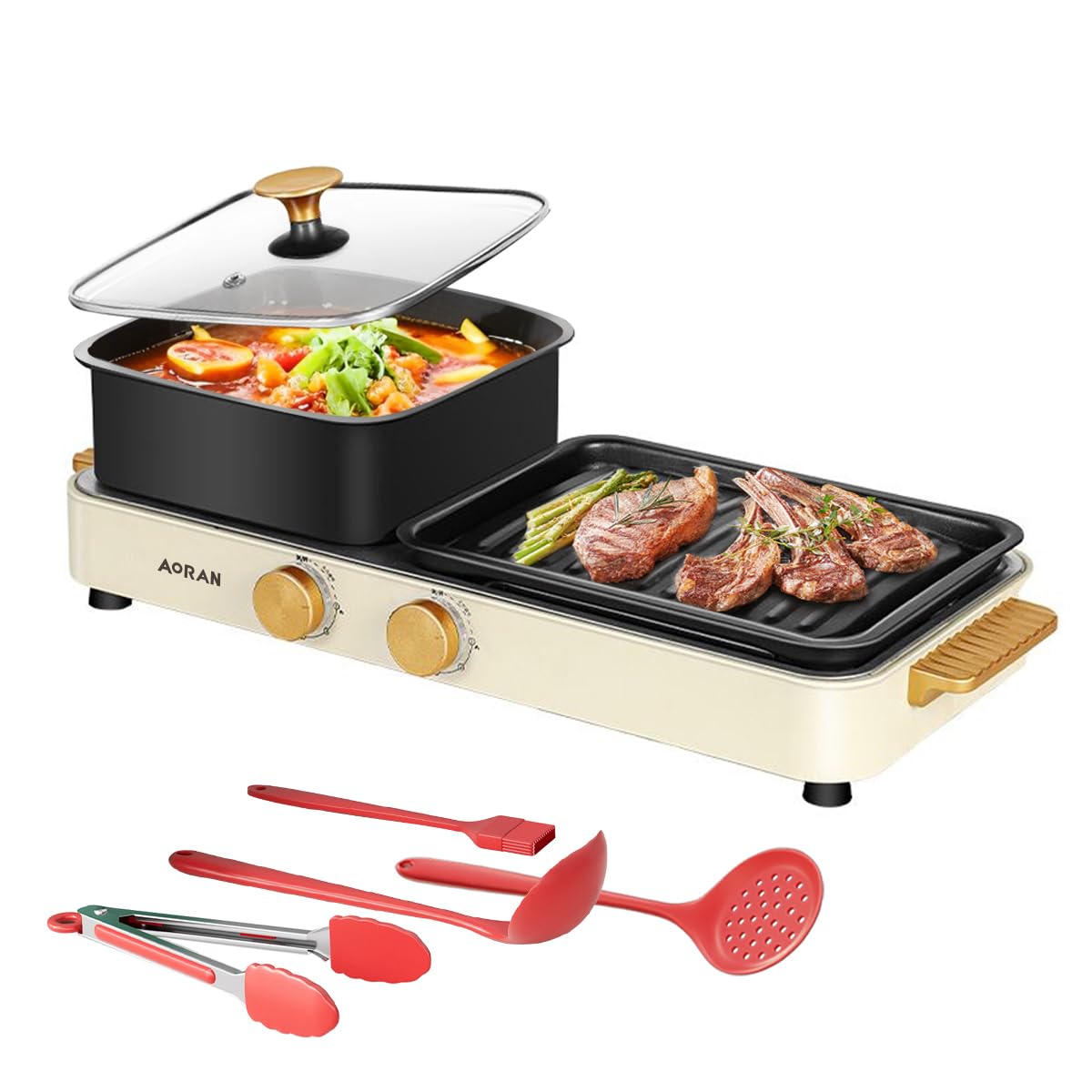 AORAN – Combo de parrilla eléctrica 2 en 1 para interiores y olla caliente, cocina sin humo de doble zona de 1400 W, incluye juego