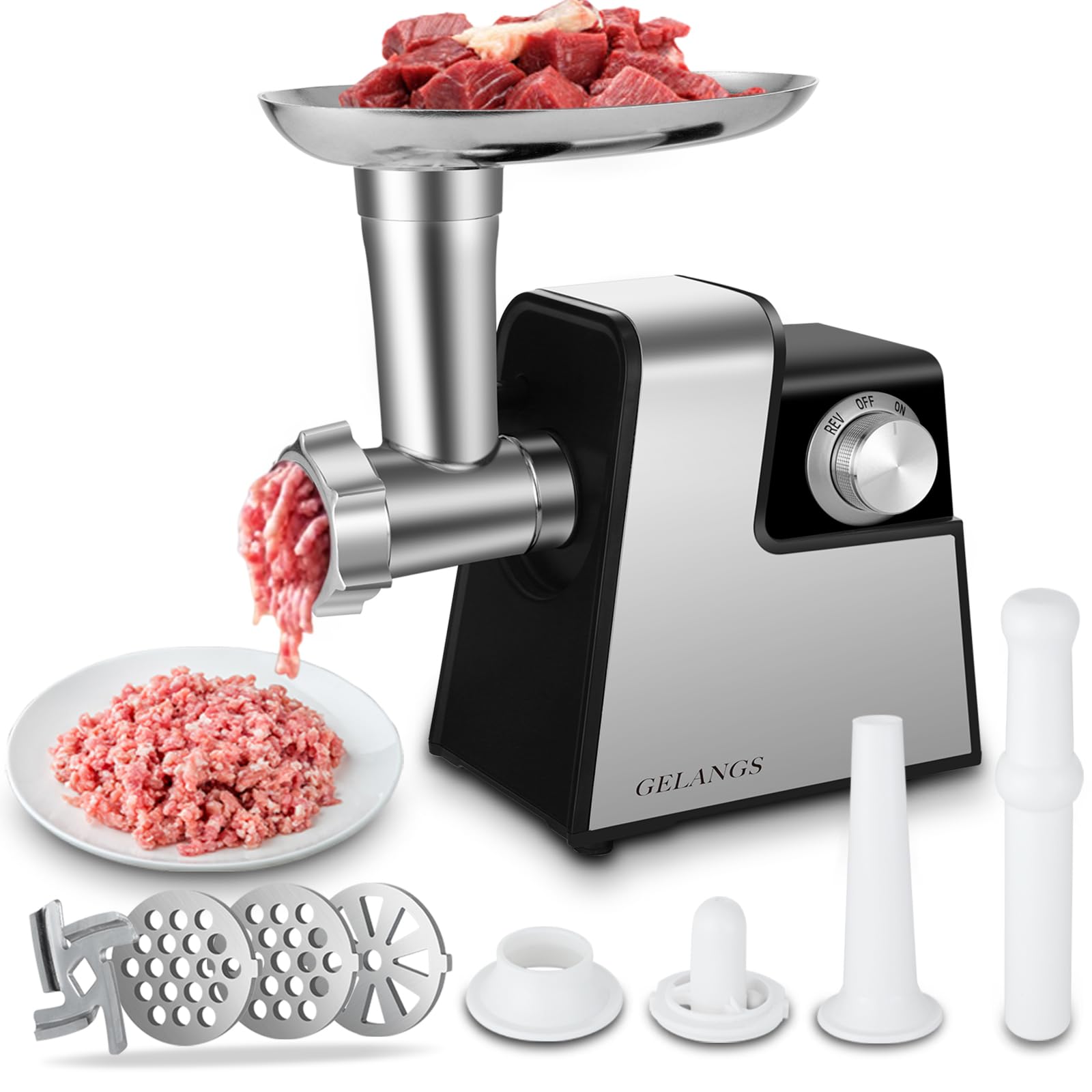 Picadora de carne, relleno de salchichas, [2800 W máximo] Picadora eléctrica de carne con cuchillas de acero inoxidable y 3 placas