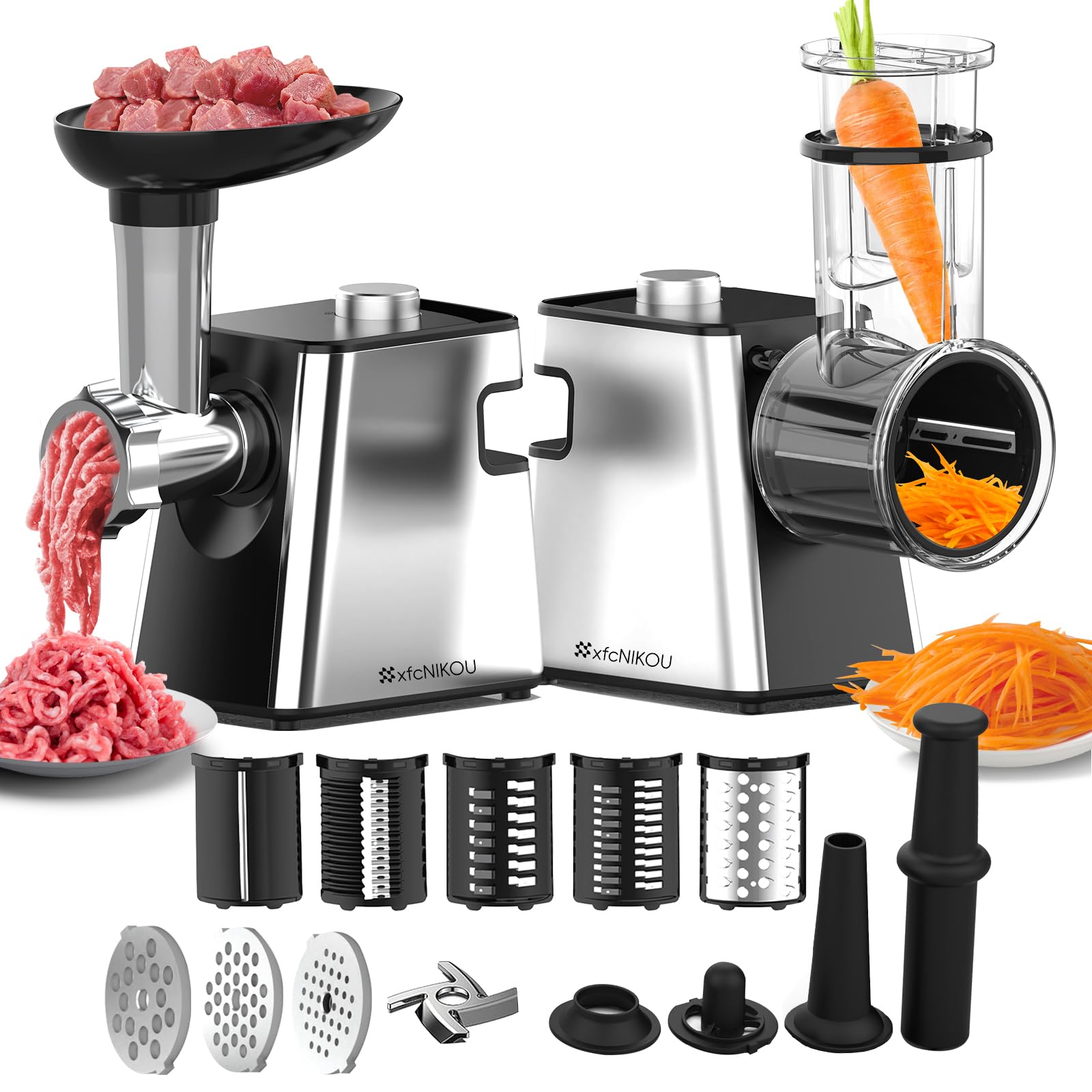 Rallador eléctrico de queso y molinillo de carne 2 en 1: cortador de verduras, cortador de verduras, triturador de verduras, picad