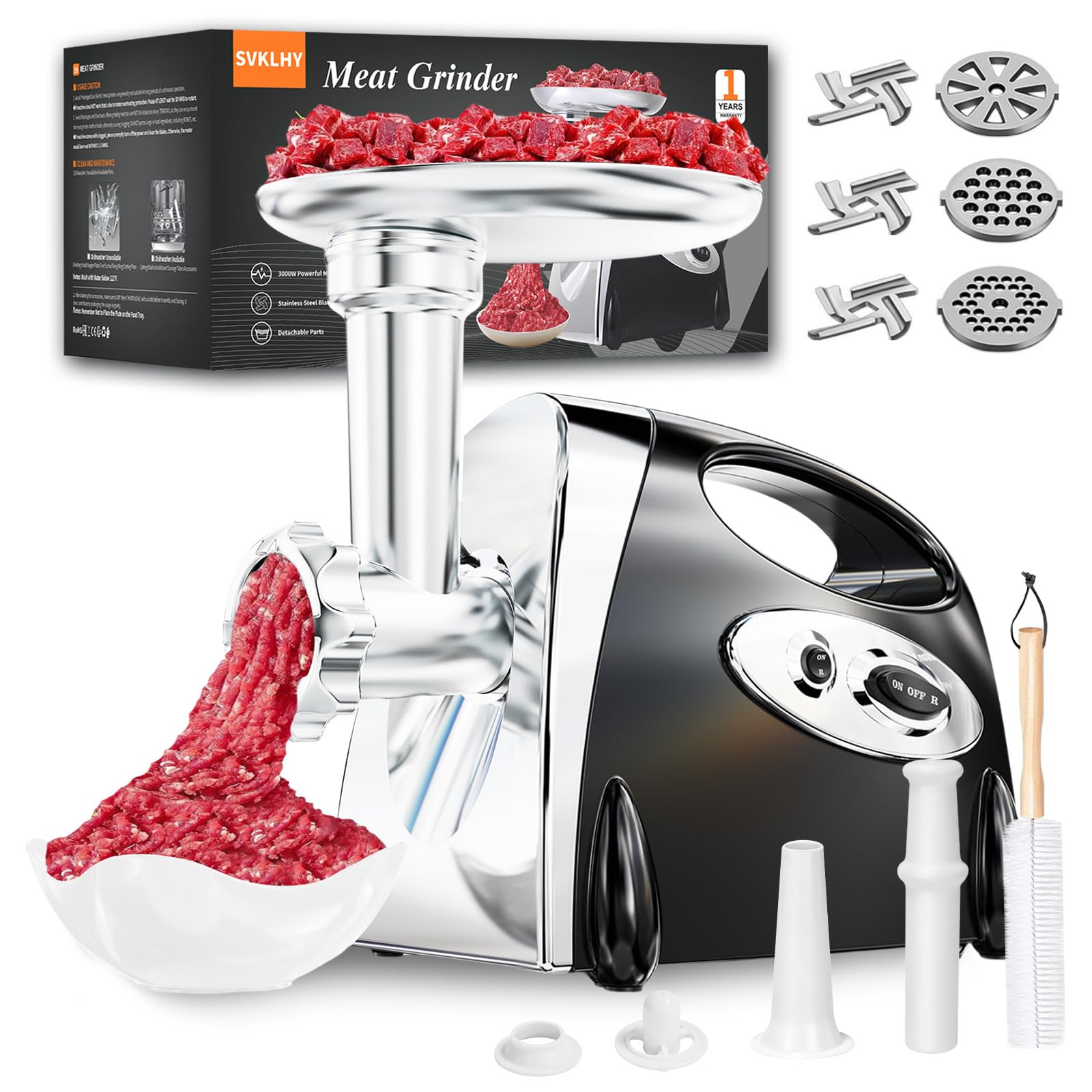 Picadora de carne n.º 8, [3200 W máximo] Material eléctrico de salchicha resistente con 2 cuchillas de acero inoxidable y 3 placas