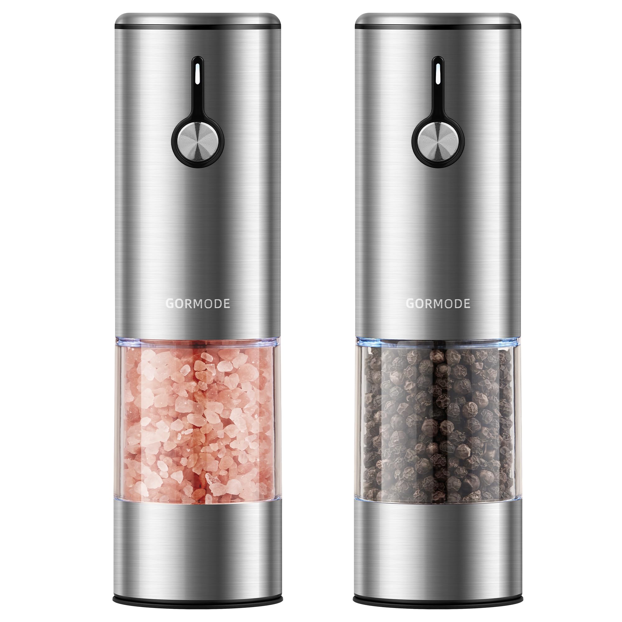Juego de molinillo eléctrico de sal y pimienta, recargable con luces LED, molino automático de sal y pimienta de acero inoxidable,