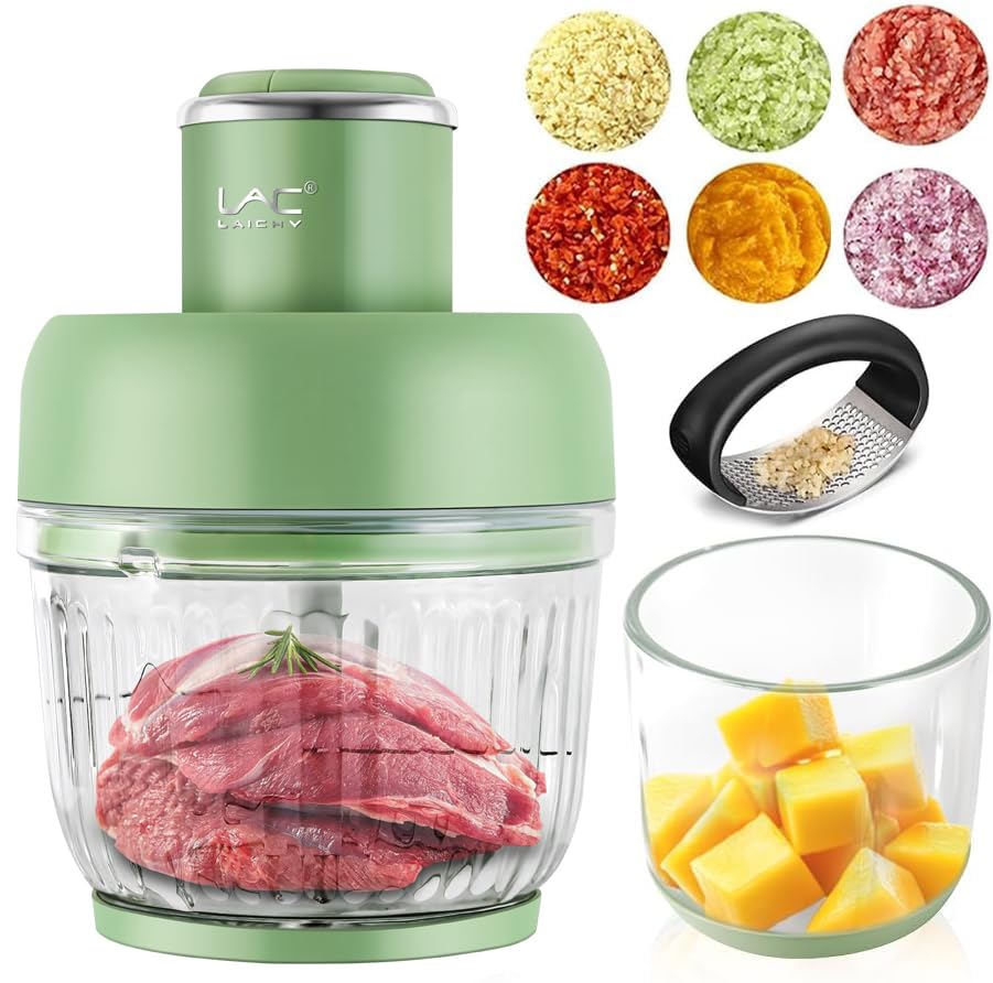 Verde – Mini procesador eléctrico de alimentos y picador de ajo, 8.5 fl oz, carga USB, 3 cuchillas, perfecto para picar verduras,