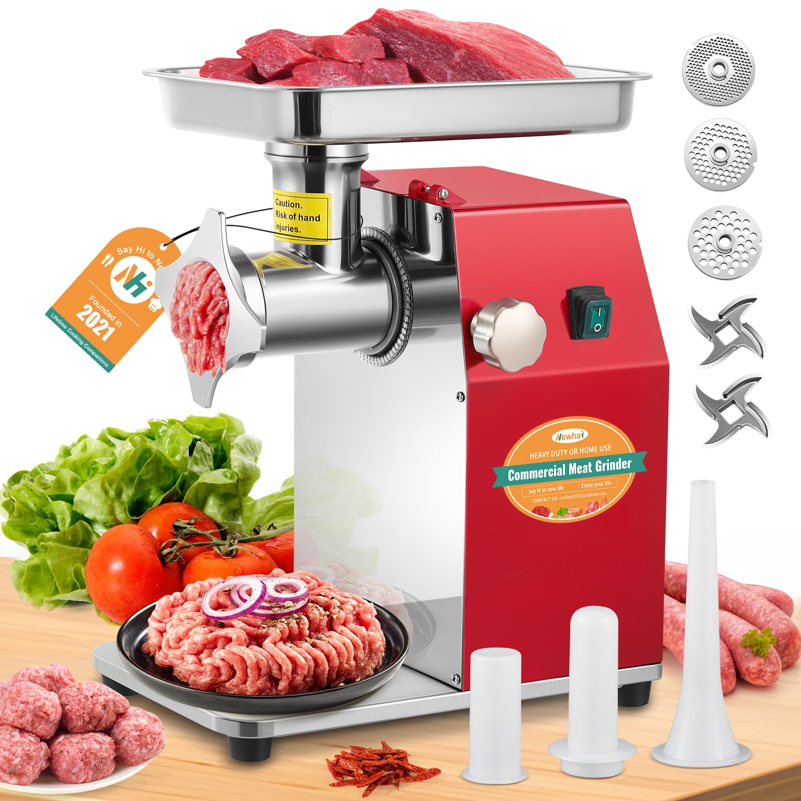 Newhai Máquina picadora de carne comercial # 12 Picadora de carne de alta resistencia, procesador de carne industrial de acero ino