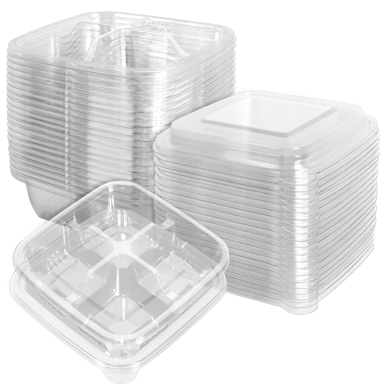Paquete de 40 recipientes transparentes de comida Bento para aperitivos, 4 compartimentos para preparación de comidas con tapas pa