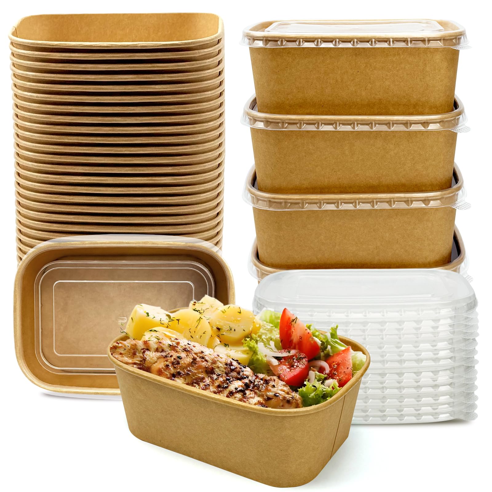 Paquete de 50 recipientes de papel para preparación de comidas con tapas, 20 onzas, desechables y compostables, recipientes de ali