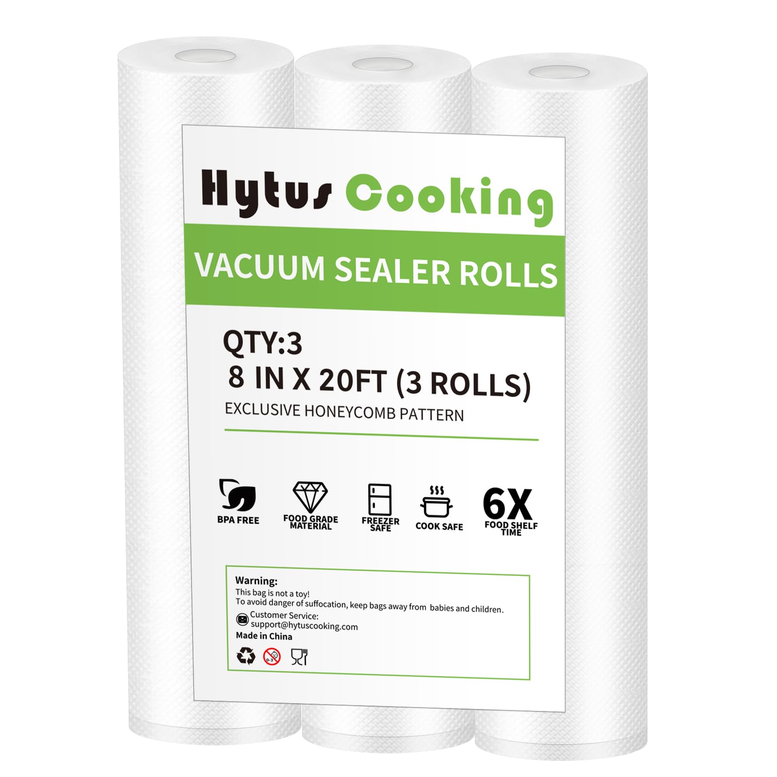 HytusCooking – Rollos selladores al vacío, 3 rollos de 8 x 20 pies, sin BPA, bolsas de almacenamiento de alimentos de grado comerc