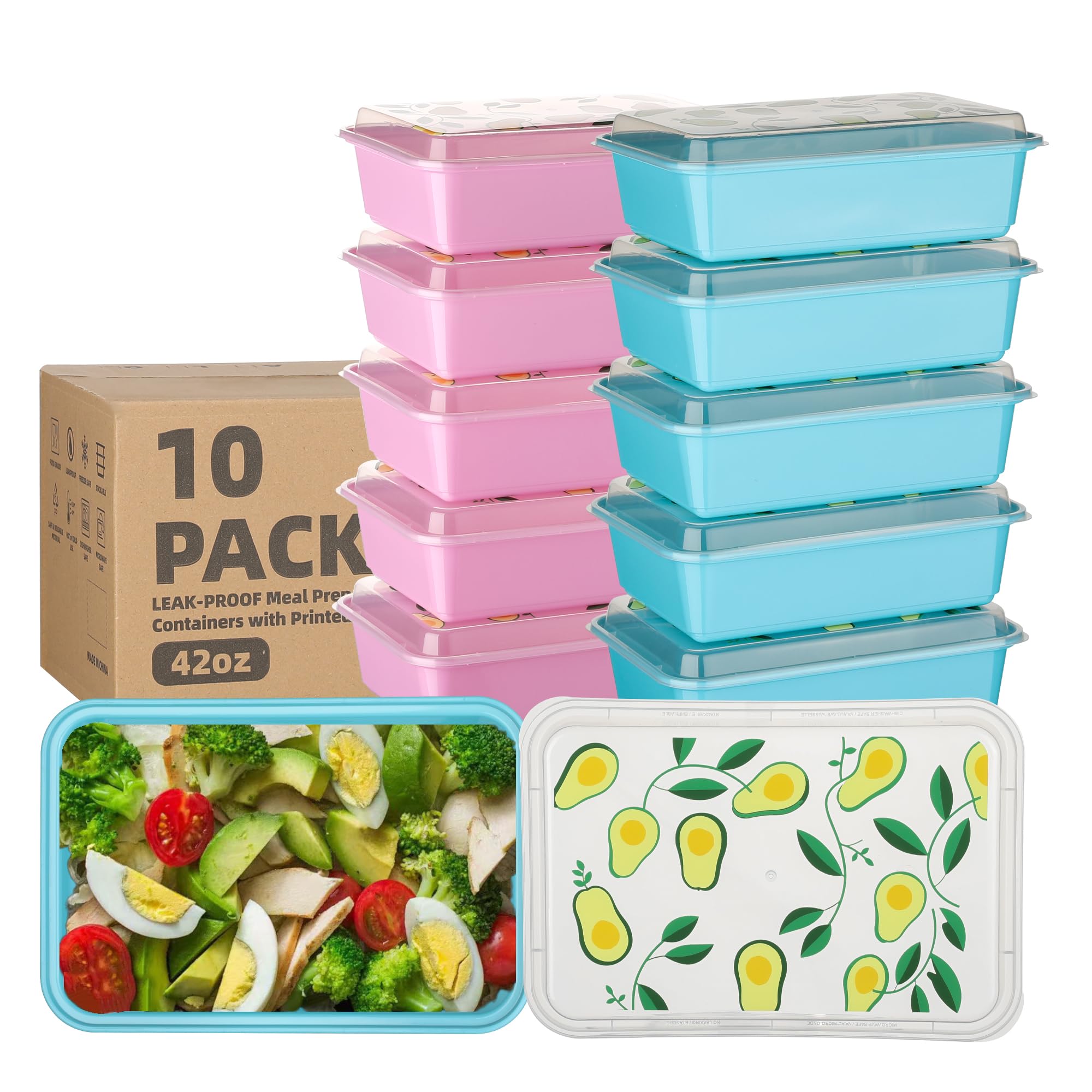 Paquete de 10 recipientes de preparación de comidas de 42 onzas, recipientes de plástico reutilizables para almacenamiento de alim