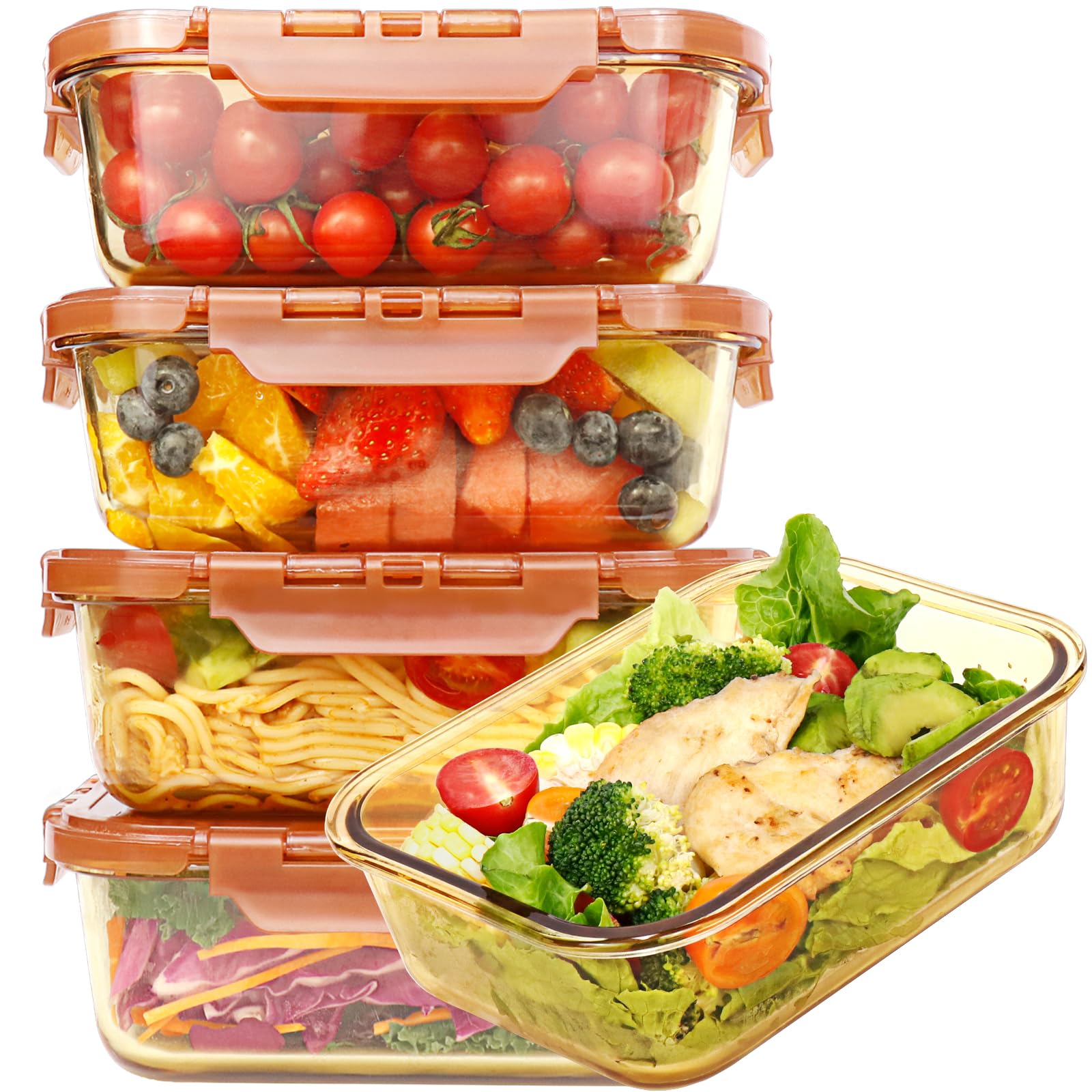 Contenedores de vidrio de 36 onzas para preparación de comidas, 10 piezas, recipientes de vidrio para almacenamiento de alimentos
