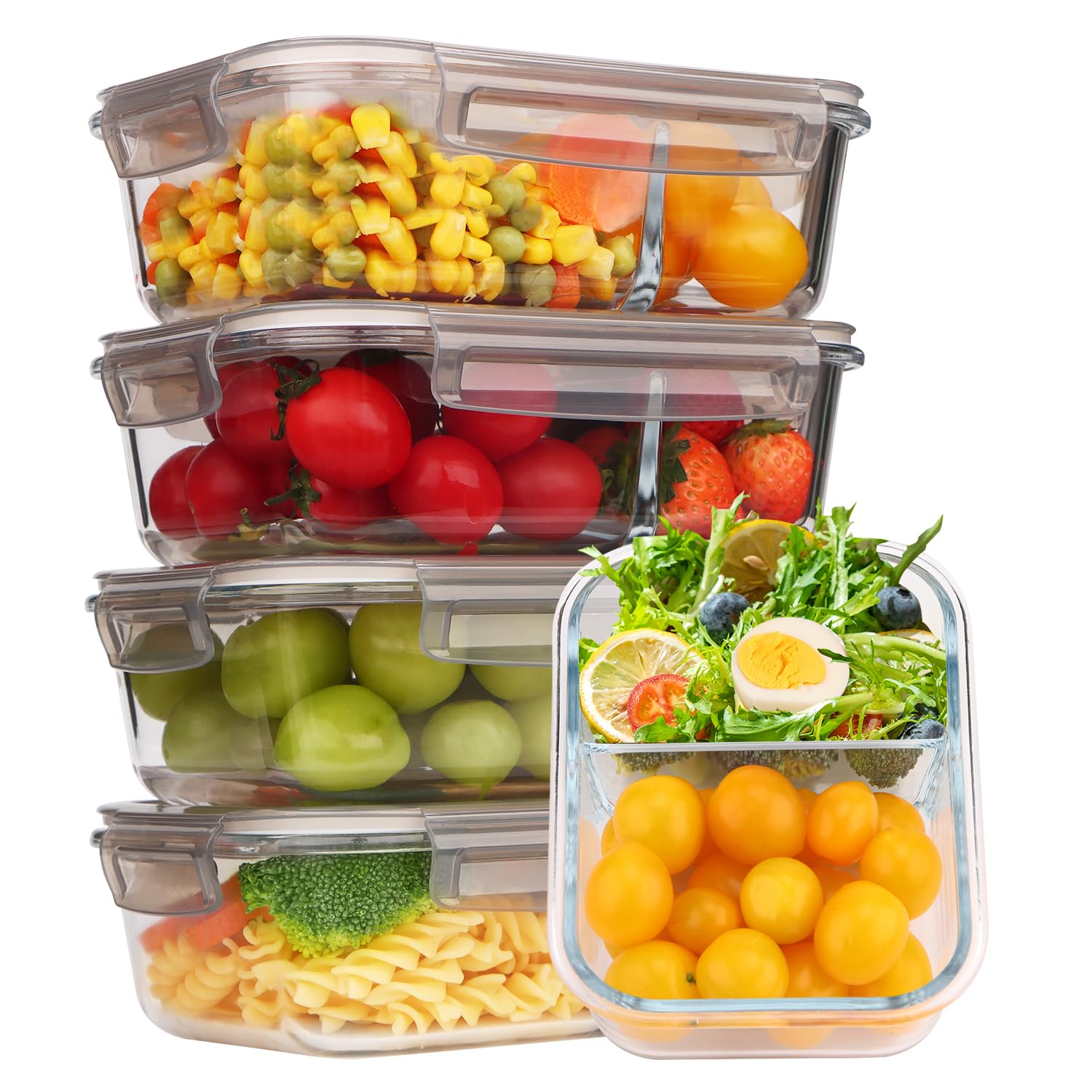 5 recipientes de vidrio de 35 onzas con tapas herméticas, cajas Bento para el almuerzo, lonchera de 2 compartimentos, recipientes