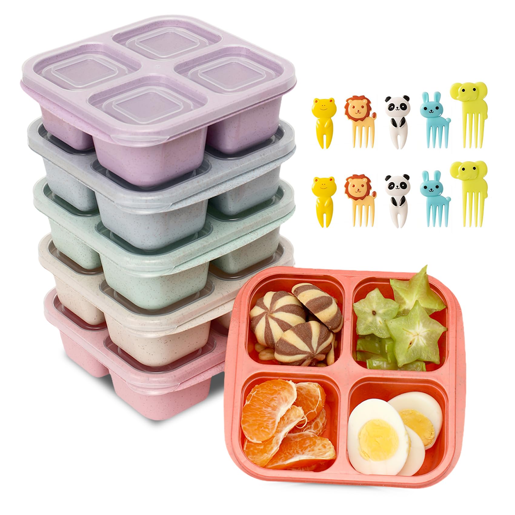 Paquete de 6 recipientes para aperitivos para niños y adultos, contenedor reutilizable de 4 compartimentos con tapas, cajas Bento