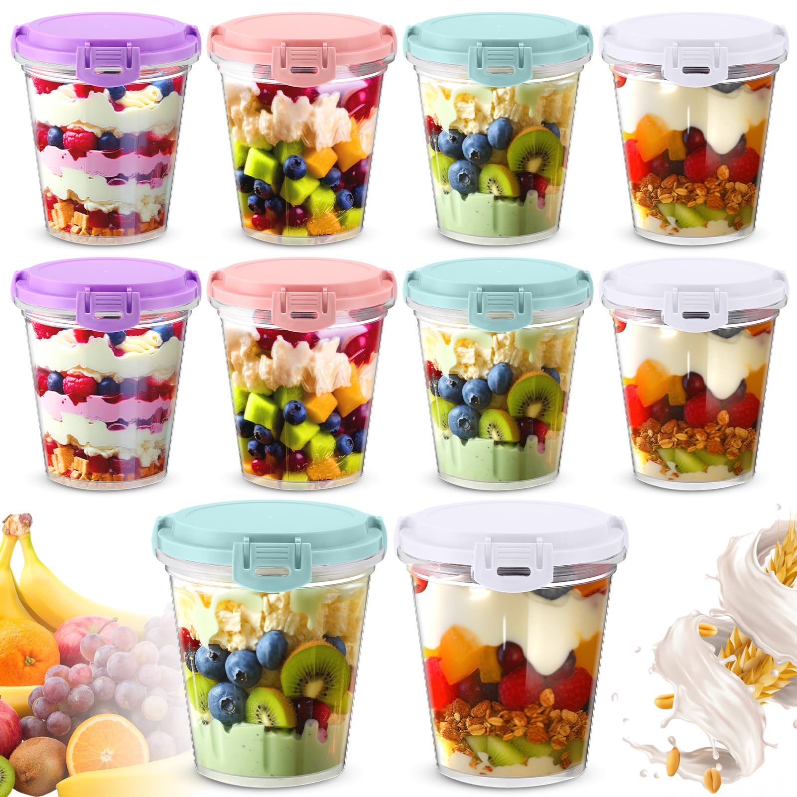 10 recipientes de avena con tapas de 24 onzas, a prueba de fugas, reutilizables, de plástico, para almacenamiento de alimentos, pa
