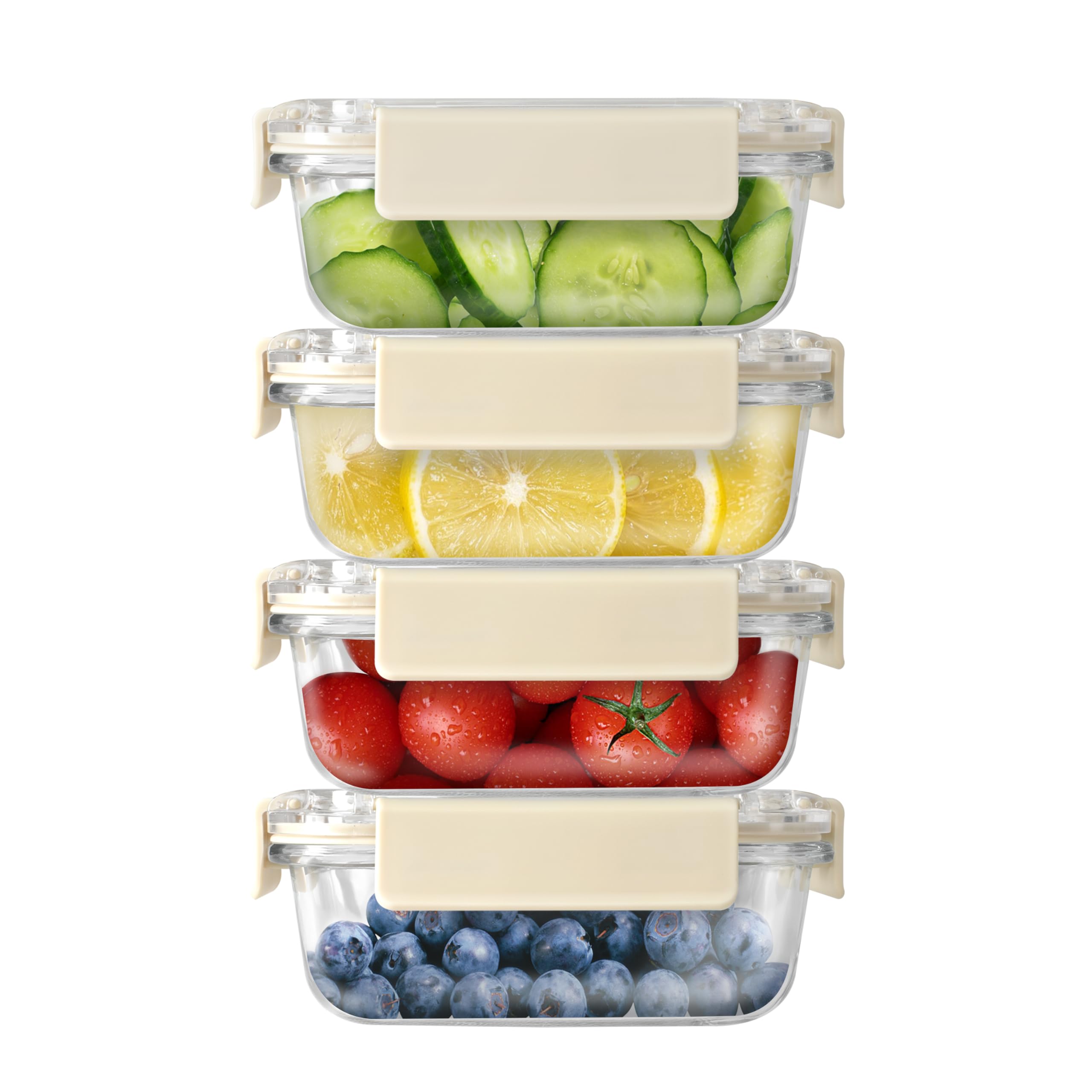 YSSOA Recipientes de comida con tapas de vidrio exclusivas, recipientes de almacenamiento de vidrio con tapas, sin BPA, fiambreras