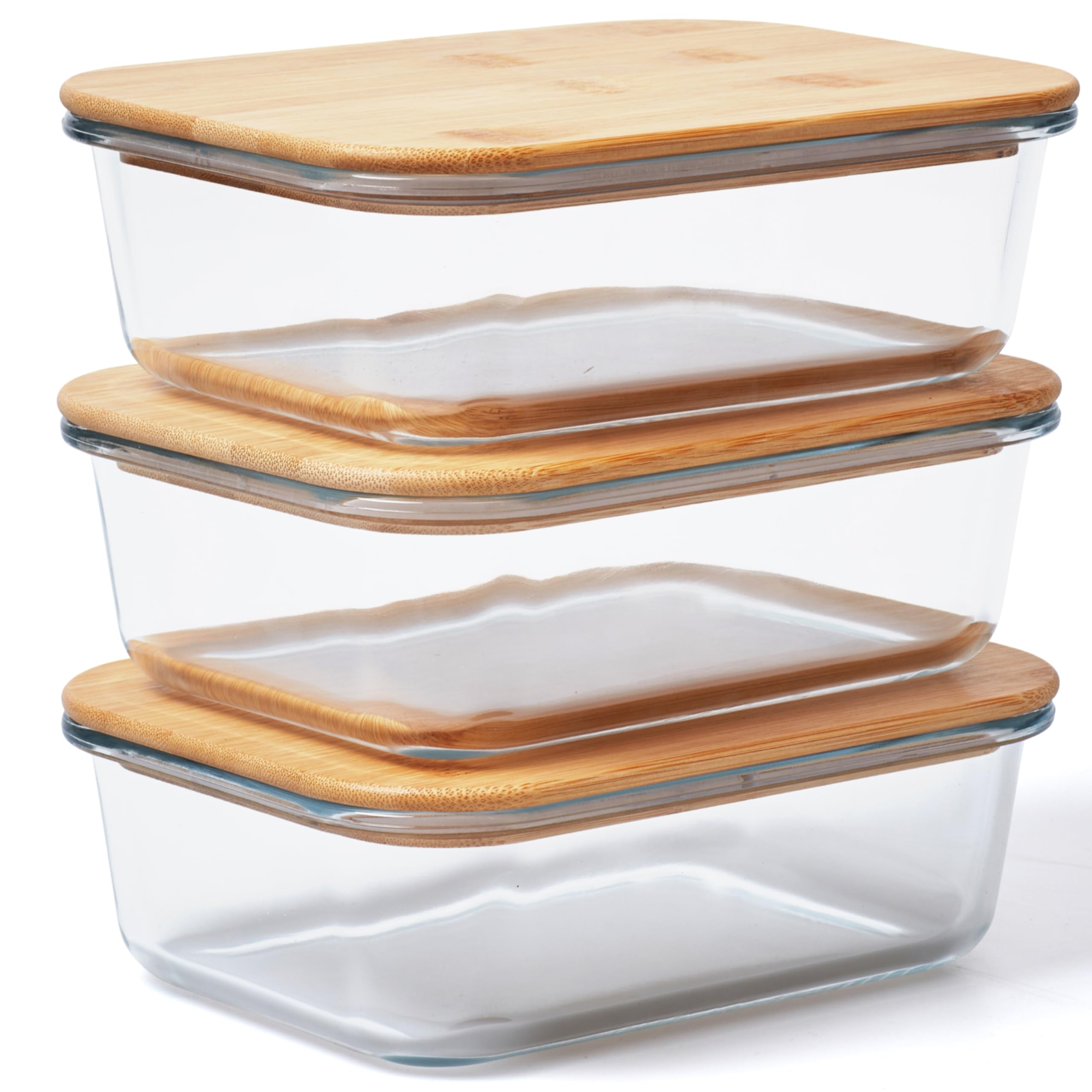 Prosumer’s Choice Recipientes de vidrio con tapas de bambú, 36 onzas, juego de 3 apilables para almacenamiento de alimentos con ta