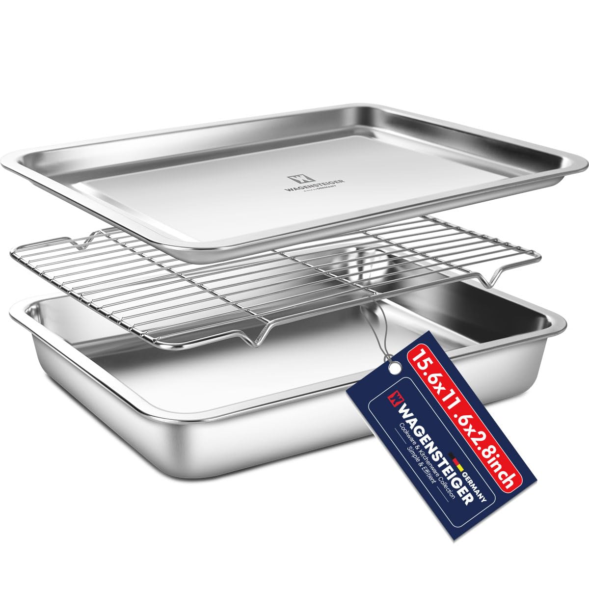 Recipiente de acero inoxidable para preparación de alimentos con estante y tapa (bandeja), 5.6 cuartos de galón, sartenes de cater