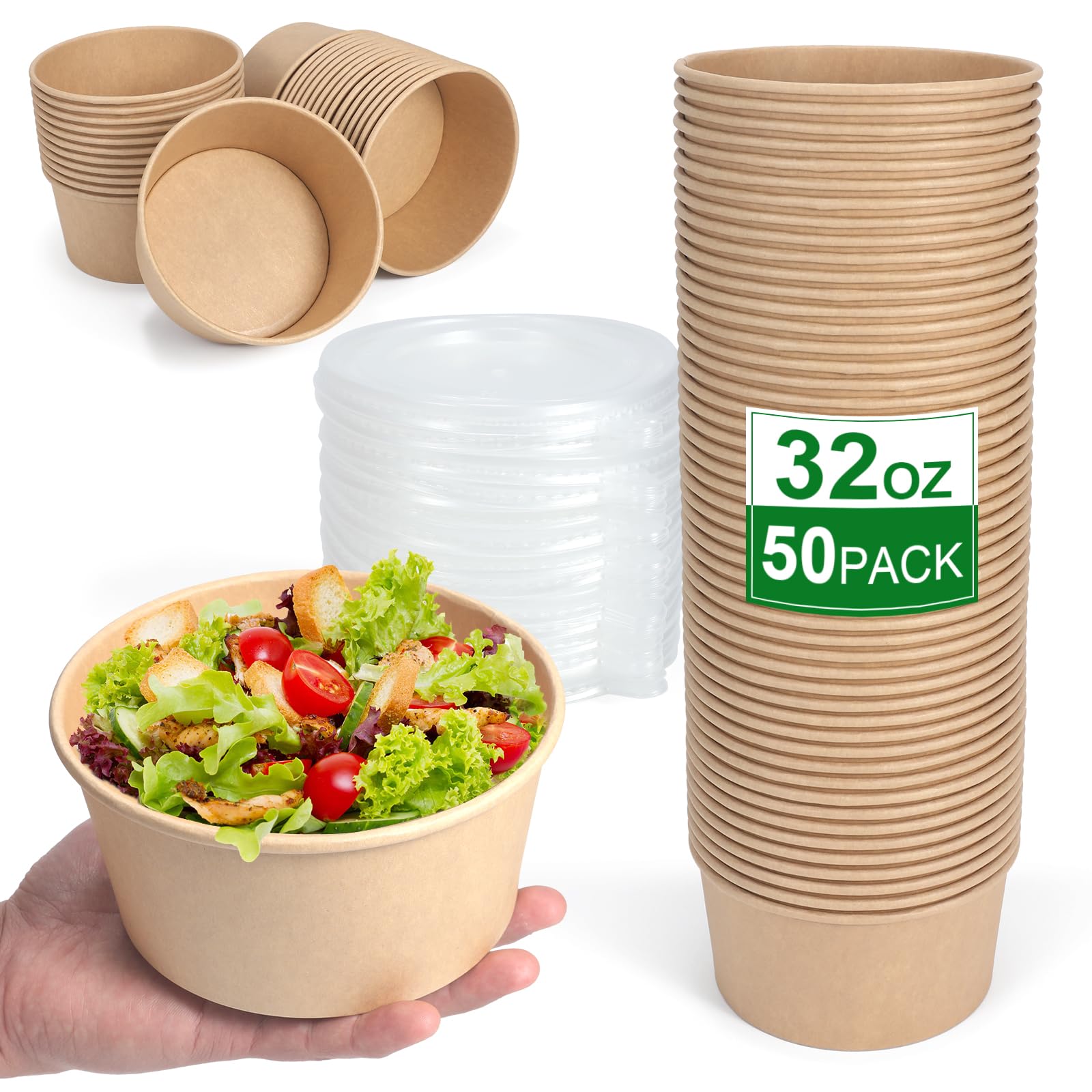 50 recipientes desechables de 32 onzas, cuencos de papel con tapas, cuencos de sopa desechables, cuencos de sopa desechables para