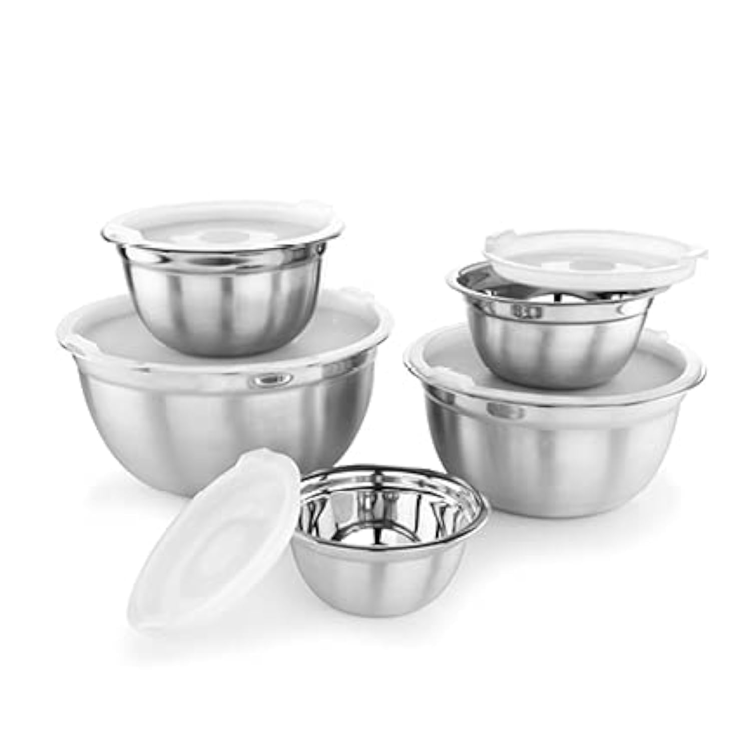 AVADOR Juego de 5 cuencos de acero inoxidable prémium con tapas, juego de 5 cuencos de acero inoxidable cepillado, fáciles de limp