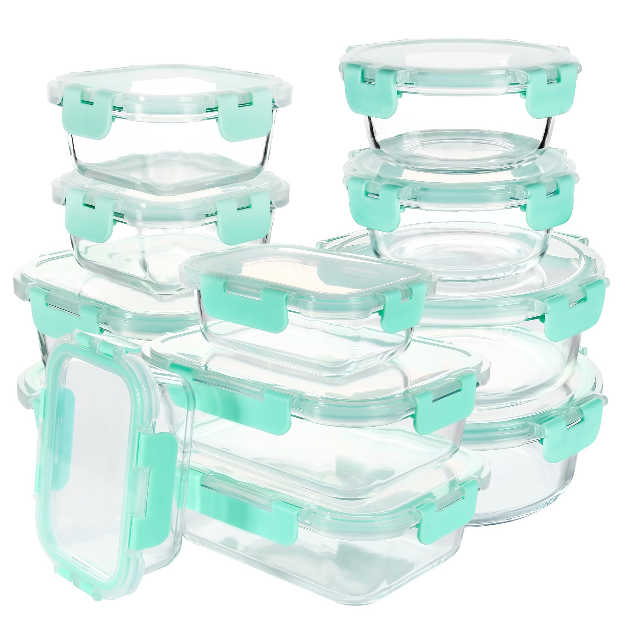 Juego de 12 recipientes de vidrio para comida preparada, para almuerzos, aptos para lavavajillas, verde menta